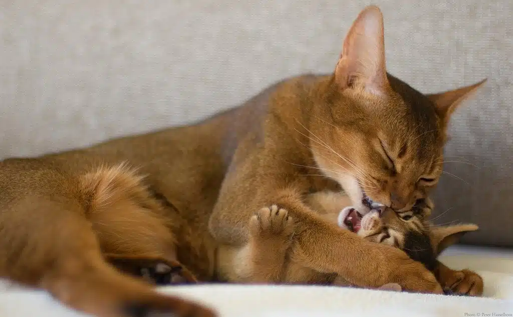 Ці кішки відомі своєю неймовірною дружелюбністю та сильною прив’язаністю до власника. Абіссінці не просто люблять проводити час поруч із людьми, вони обожнюють бути частиною сімейного життя. Вони завжди готові погратися з улюбленими іграшками або навіть допомогти вам у домашніх справах. Часто їх порівнюють із собаками за відданість і бажання бути поруч зі своїм власником. Хоча ці кішки не завжди сидять на руках, вони завжди поруч, слідкуючи за вами по всьому дому. Вони люблять бути в центрі подій, і де б ви не були (на кухні, у вітальні чи в іншій кімнаті), вони з радістю приєднаються, щоб бути частиною всього, що відбувається.
