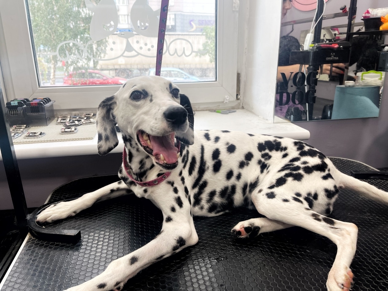 Хоча далматини не потребують стрижки, професійний догляд значно спростить вам життя, коли у вас немає часу на грумінг, коли улюбленець сильно линяє або з’являється неприємний запах. Грумери у доволі швидкий термін якісно вичешуть шерсть, очистять та зволожать шкіру професійними засобами, добре підстрижуть кігті, видалять бруд з вушок та зони очей, а також висушать шерсть за допомогою бустера, який додатково дозволяє прибрати її ще більше.