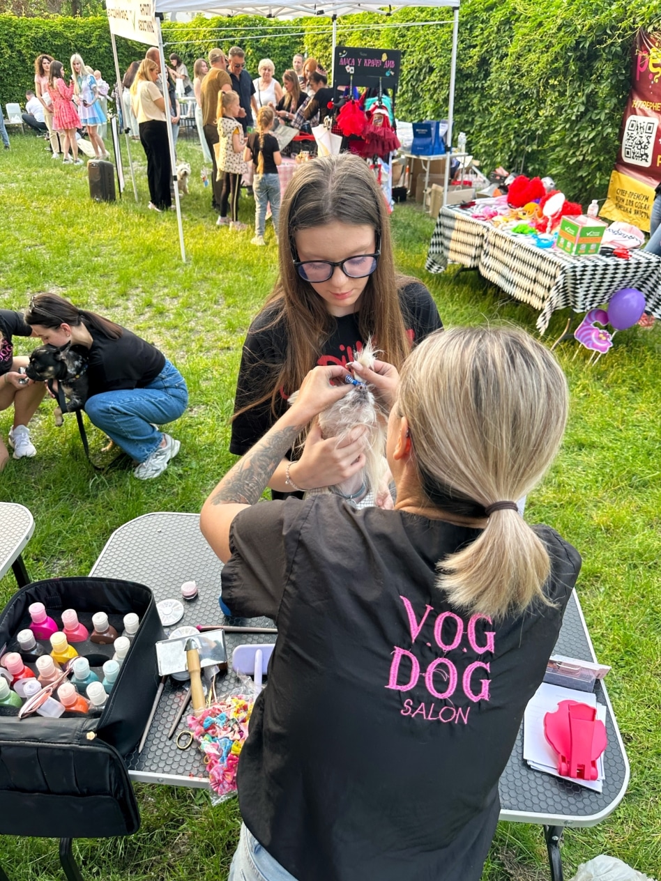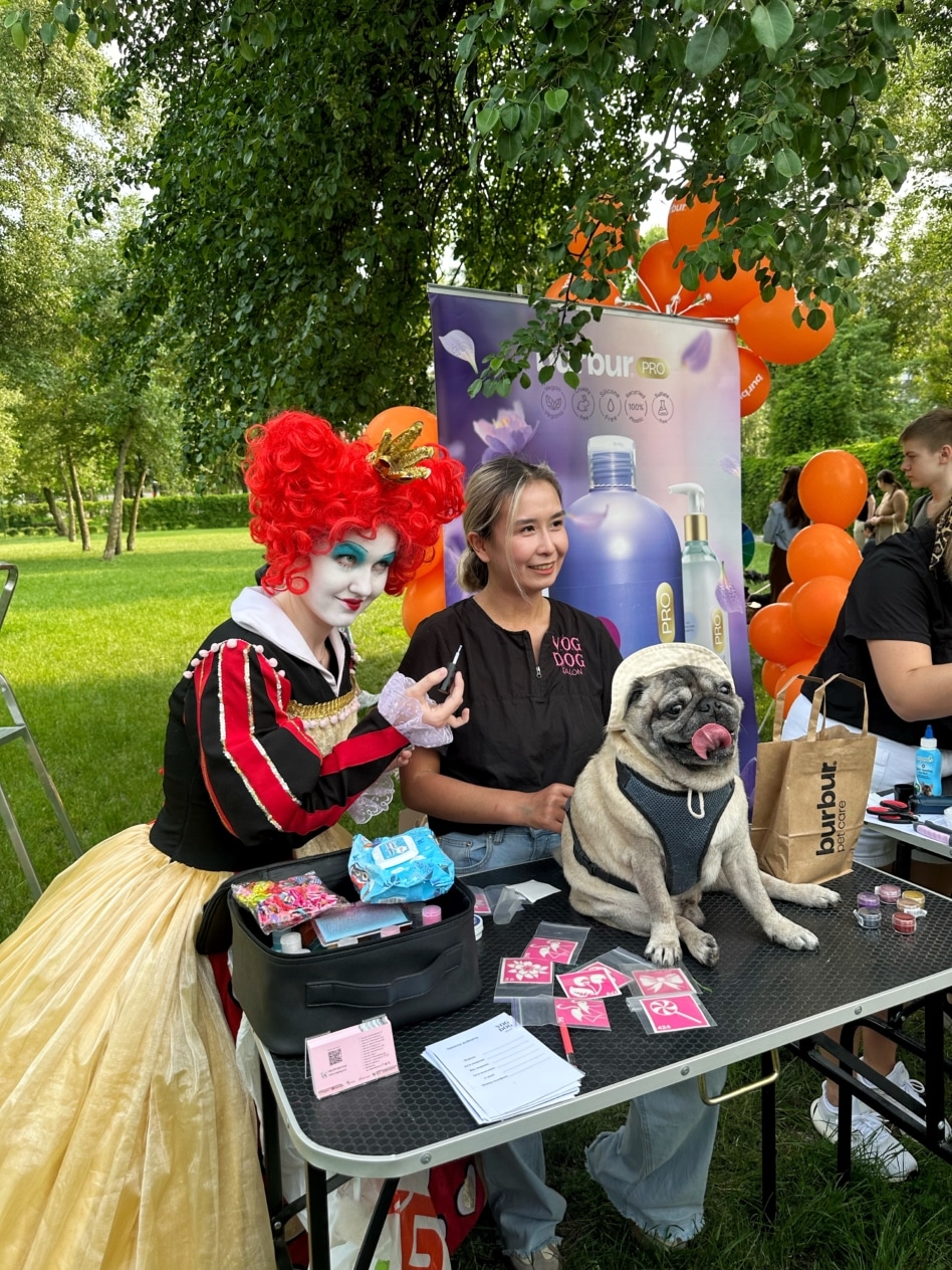 Die Atmosphäre glich einem echten Urlaub: Fotozonen, Figuren aus dem Buch, Teepartys, Verlosungen, Quests, Geschenkverlosungen – alles, um denjenigen zu helfen, die nicht von sich erzählen können. Aber die Grooming-Zone, in der Groomer der V.O.G DOG SALON-Kette arbeiteten, erweckte das größte Interesse bei den Gästen.