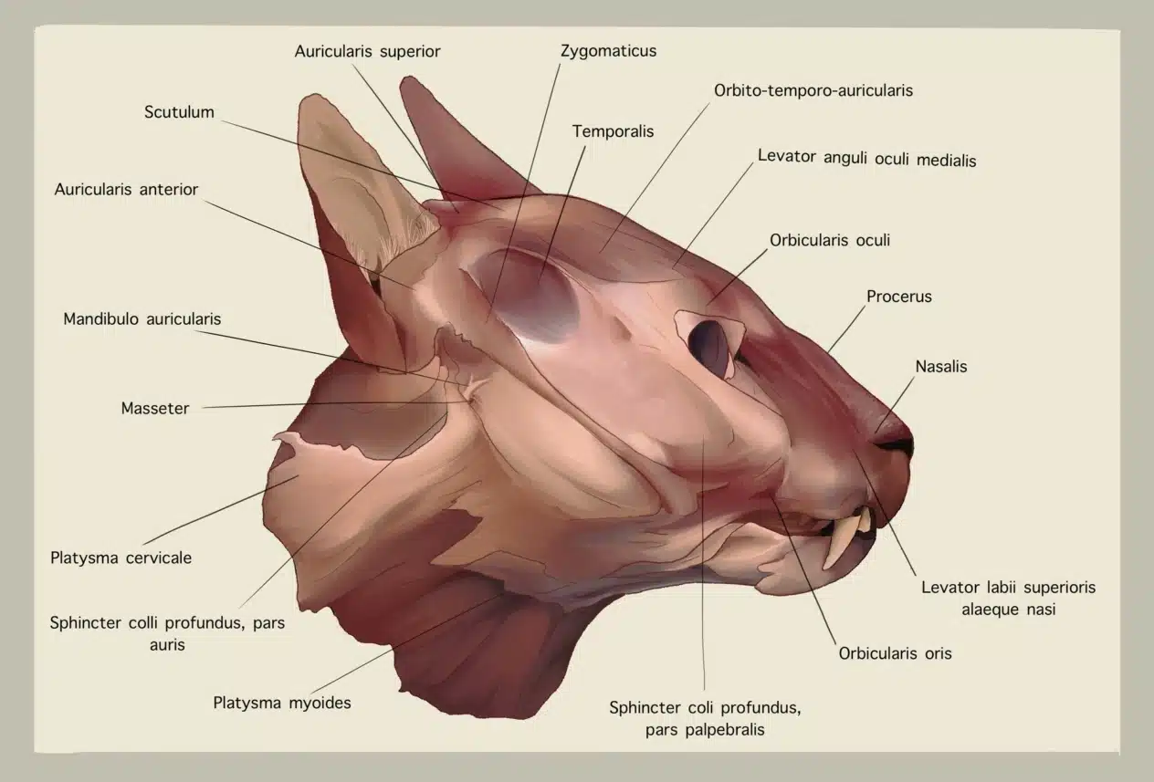 Der Körper der Katze ist mit mehr als 500 Muskeln bedeckt, insbesondere die starken Hintergliedmaßen, die für das Springen verantwortlich sind. Ihre Muskeln arbeiten reibungslos und synchron – die Katze läuft also nicht nur, sie „fließt“. Die einzigartige Muskelstruktur ermöglicht es der Katze auch, ihre Ohren zu drehen, ihr Fell bei Angst anzuheben (der „aufgeblasene“ Katzeneffekt) und bei der Jagd fast unsichtbar zu bleiben.