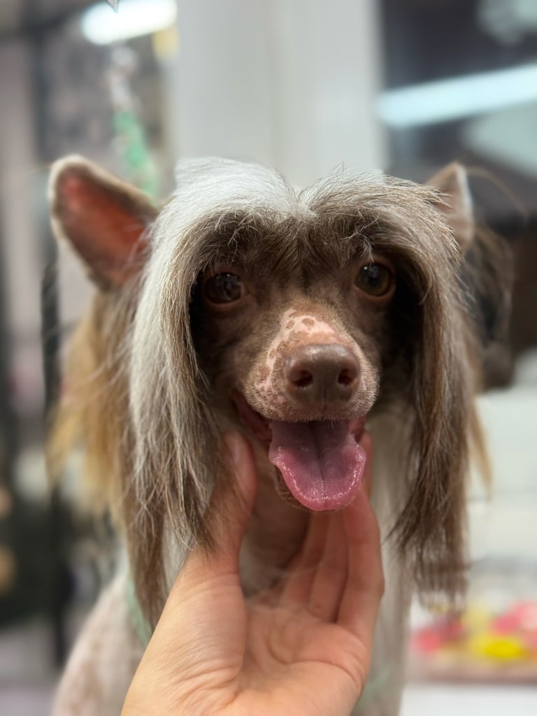 Die nackte Varietät braucht keinen Haarschnitt, aber manchmal ist es notwendig, die Reste des Flaums am Körper zu trimmen, damit er nicht ungepflegt aussieht. Ein Haarschnitt der Chinese Crested Downy ist in der Regel notwendig.