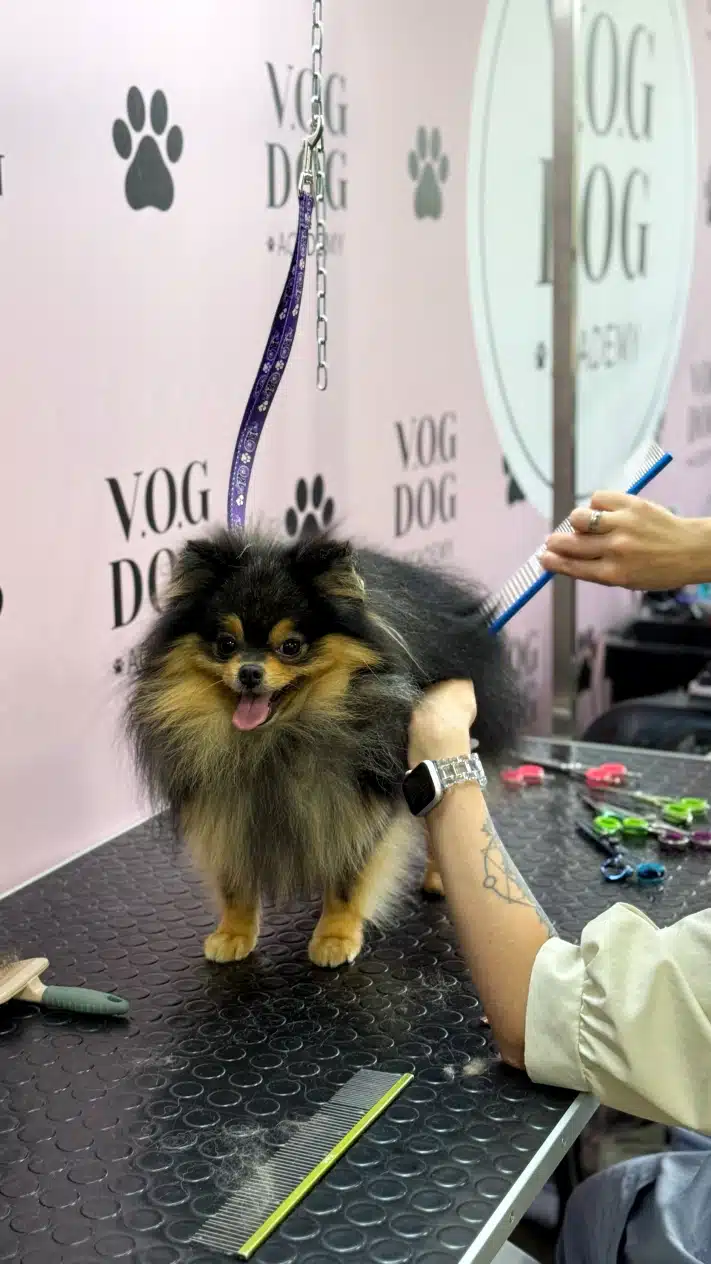 Was unterscheidet die V.O.G DOG ACADEMY von allen anderen Ausbildungen? Zunächst einmal gibt es keine „Theorie um der Theorie willen“ – alles geht direkt in die Praxis. Die Schüler/innen arbeiten mit echten Kunden, mit echten Hunden, in echten Salons, nicht an Schaufensterpuppen. Das ist keine Nachahmung – das ist echtes Eintauchen. Der V.O.G DOG SALON wird zu einem lebendigen Workshop, in dem jede Hand lernt, jedes Herz sich öffnet und jede Erfahrung ein Schritt in Richtung Vertrauen ist.