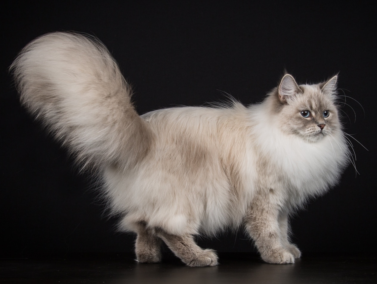 Die Nevskaya Maskeradekatze ist schildpatt gefärbt. Die Abzeichen sind gesättigt, dunkel und befinden sich an den Pfoten, dem Schwanz und der Schnauze. Die schildpattfarbenen Flecken haben eine dunkelrote oder satt cremefarbene Farbe, die Augen sind blau.
