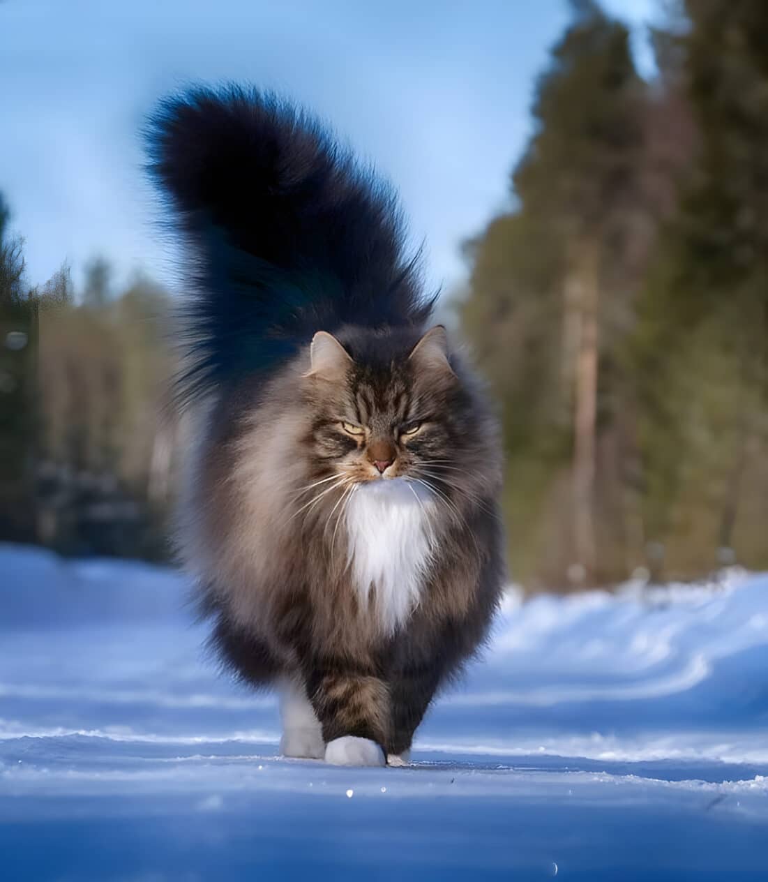 Besonderheiten bei der Pflege: Obwohl sibirische Katzen an kalte Klimazonen angepasst sind, fühlen sie sich in jeder häuslichen Umgebung wohl. Ein wichtiger Teil der Pflege einer sibirischen Katze ist das regelmäßige Bürsten ihres dichten Fells, vor allem während der Fellwechselzeit, um Verfilzungen zu vermeiden und das Fell in gutem Zustand zu halten. Diese Katzen lieben es auch, aktiv zu spielen, daher ist es wichtig, ihnen viel Spielzeug und Bewegungsmöglichkeiten zu bieten.