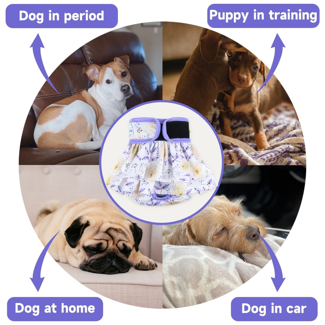 Wiederverwendbare Windeln sind aufgrund ihrer Kosteneffizienz und Umweltfreundlichkeit sehr beliebt geworden. Sie bestehen aus mehreren Schichten: Die oberste Schicht lässt die Feuchtigkeit schnell durch, die mittlere Schicht hält sie zurück und die unterste Schicht verhindert, dass Flüssigkeit auf den Boden tropft. Solche Windeln verrutschen nicht, behalten auch nach aktivem Gebrauch ihre Form und halten Dutzende von Waschgängen aus. Ihr Hauptvorteil ist der Komfort für Hund und Halter: Der Geruch breitet sich viel weniger aus als bei billigen Wegwerfwindeln, und der weiche Stoff ist angenehm für die Pfoten und verursacht keine Reizungen. Wiederverwendbare Windeln eignen sich sehr gut für Tiere, die sie regelmäßig benutzen: Welpen, Zwerghunde und Hunde in der Erholungsphase. Allerdings musst du bedenken, dass diese Windeln häufig gewaschen werden müssen und du manchmal mehrere Ersatzwindeln brauchst, um mit dem Austausch Schritt zu halten.