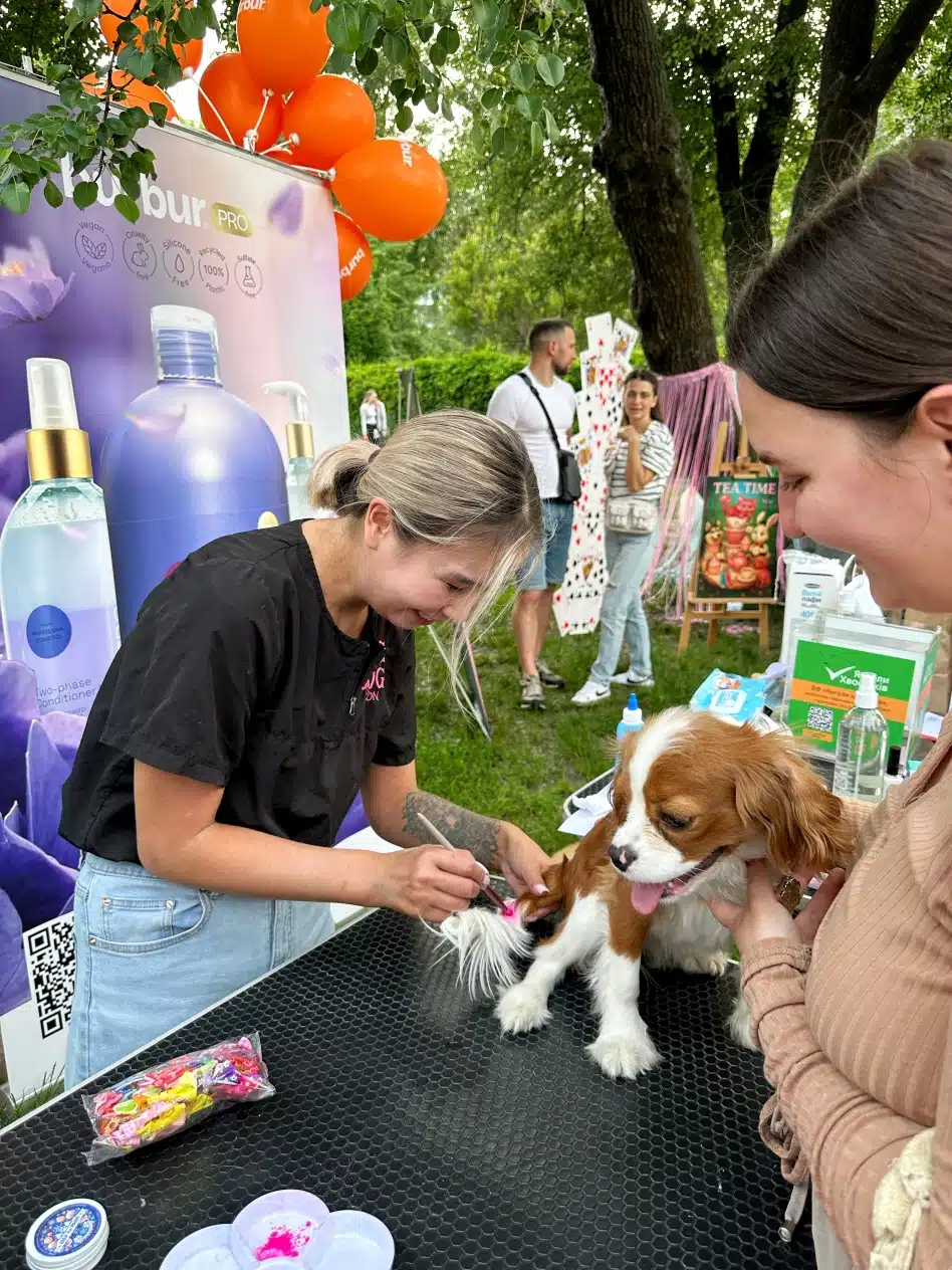 The atmosphere resembled a real holiday: photo zones, characters from the book, tea parties, lotteries, quests, gift drawings – all to help those who can’t tell about themselves. But the grooming zone, where groomers from the V.O.G DOG SALON chain worked, aroused the greatest interest among the guests.