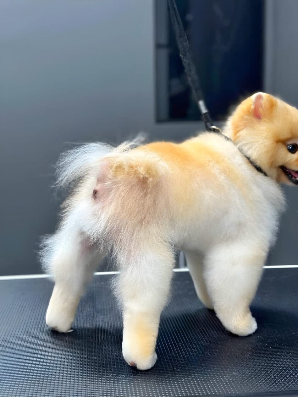 It has not been scientifically proven that a short haircut is 100% the cause of hair loss. However, disruption of the stage of active growth is the main factor of the disease. Our groomers do not recommend choosing haircuts that are too short. In any case, the length of the coat should remain at least 2 cm. Also, for the same reason, owners are recommended to register Spitz for full complexes with a haircut from one year from the day of birth, when the formation of the spine is completely completed.