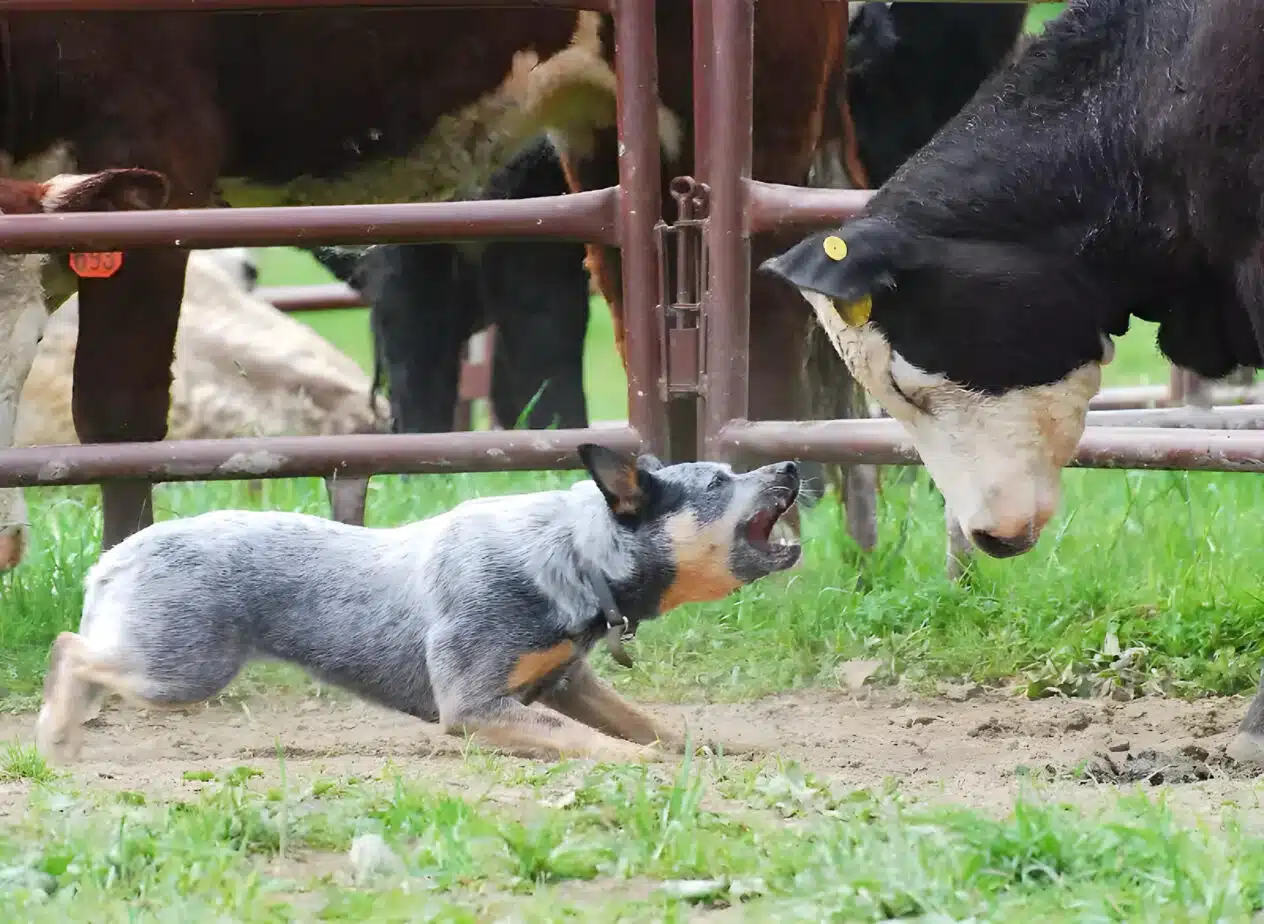 Australian healer, kettle, bouvier, cattle dog or Australian cattleman – these are all alternative names of the hero of our article. The breed was formerly used for herding tasks and got its name from its ability to grab cows and sheep by the heels to control the herd. The Heeler deftly falls to the ground after a bite to avoid being hit by a hoof and this specific method of control without barking sets it apart from other breeds.