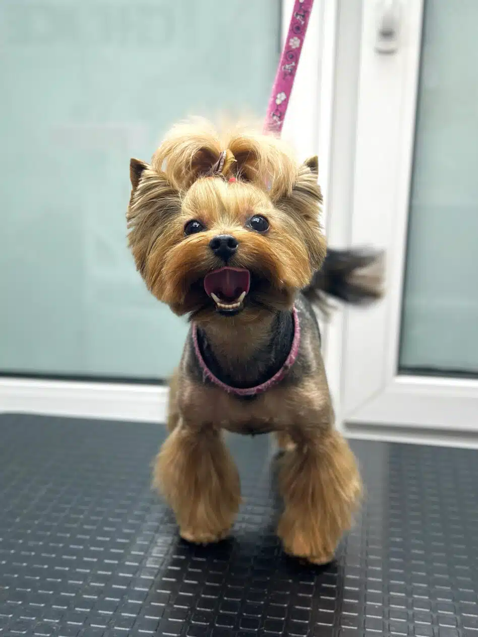 Yorkies have straight, thin hair without an undercoat, so brushing 2-3 times a week and bathing once every three weeks is sufficient. Biewer Yorks require more maintenance due to their undercoat and thicker fur. They should be brushed 3-4 times a week and bathed twice a month. It’s best to use moisturizing products and detangling sprays to prevent dryness and breakage.