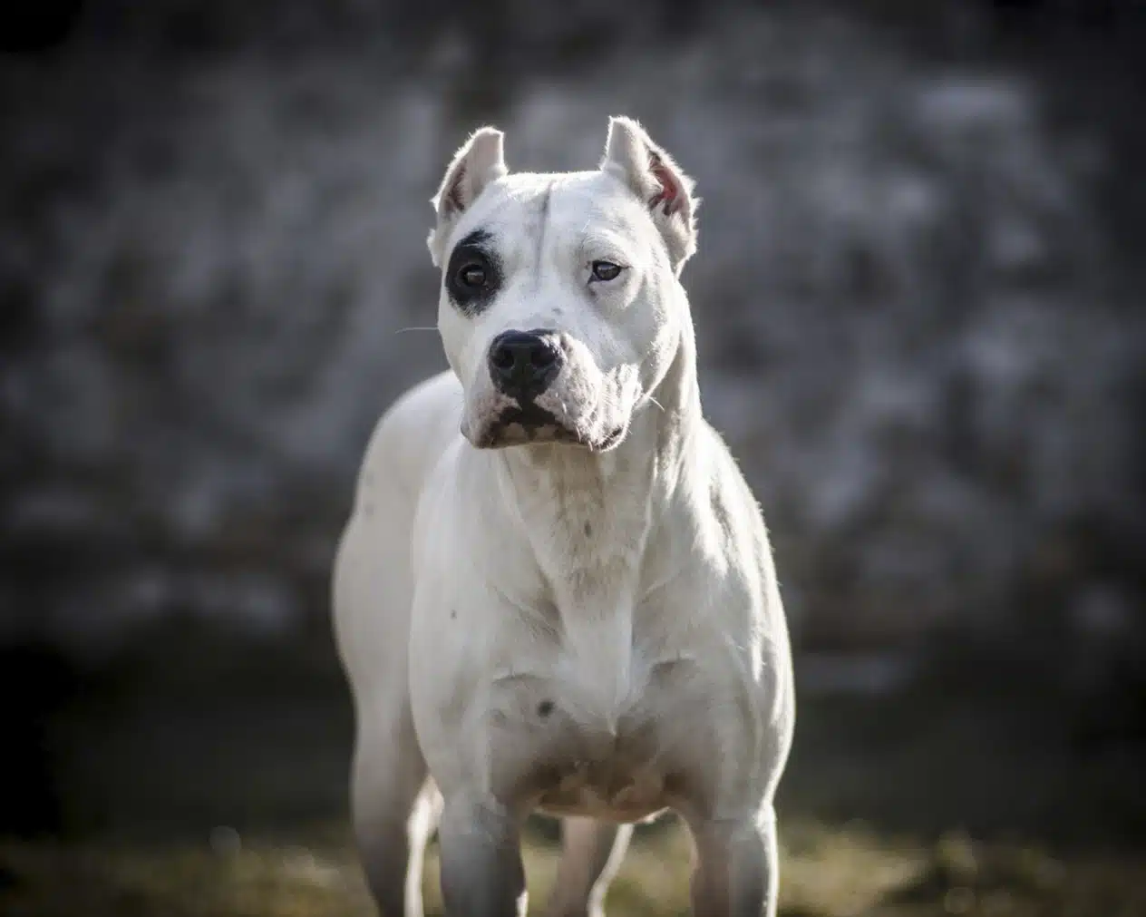 The Dogo Argentino was bred in Argentina to hunt large game such as wild boars and cougars. These are strong, powerful dogs with developed hunting instincts, who have a brave heart and high stress resistance. They are loyal, intelligent and have excellent guarding skills by nature. This is not an easy breed to train because of its tendency to dominate, so you need to have a lot of experience in dealing with large, stubborn dogs.