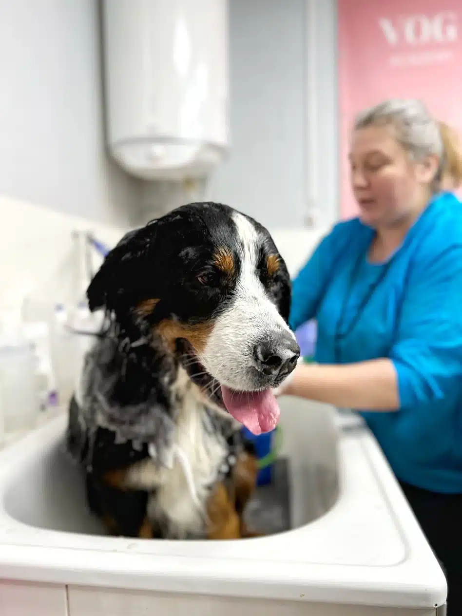 Dogs with a dense undercoat have very different coat textures, which directly affects their reaction to dog bathing. For example, Alaskan Malamutes and Siberian Huskies have a double dense coat layer that literally traps moisture inside. If these dogs are simply washed and not dried properly, even in the summer, they can get skin inflammation. It is better to wash them not more often than once in 2-3 months, and necessarily – with professional drying. Spitzes have a finer undercoat, but it is very fluffy and easily collapses into tangles after bathing if it is not combed out immediately after drying. Frequent washing without greening leads to chaotic coat growth and loss of shape. The Chow Chow is another breed that has a very thick and dense undercoat with dry skin. Frequent bathing breaks down its protective barrier and the dog becomes itchy or flaky. Australian Shepherds or Bernese Sennenhunds have a softer undercoat, but the length of the coat makes drying even more difficult – especially around the belly, paws and behind the ears. A “greenhouse” often forms there if grooming is done carelessly. Labradors have an undercoat, although it doesn’t look as fluffy. Their skin is prone to seborrhea, and if you wash your dog too often or don’t finish drying them, oily dandruff, odor, and redness result.