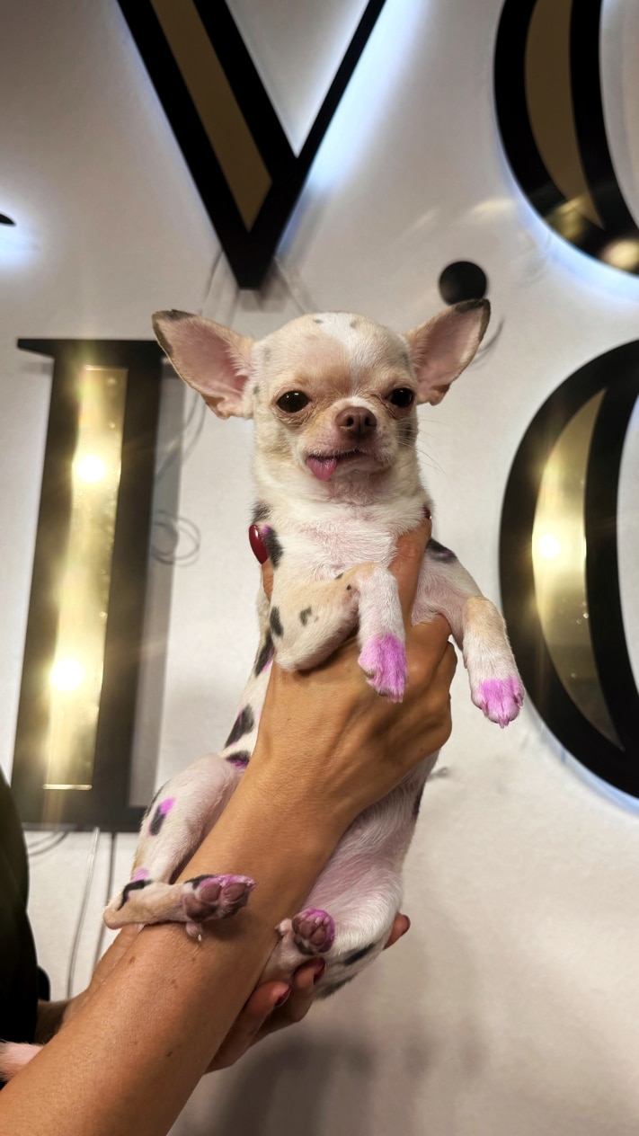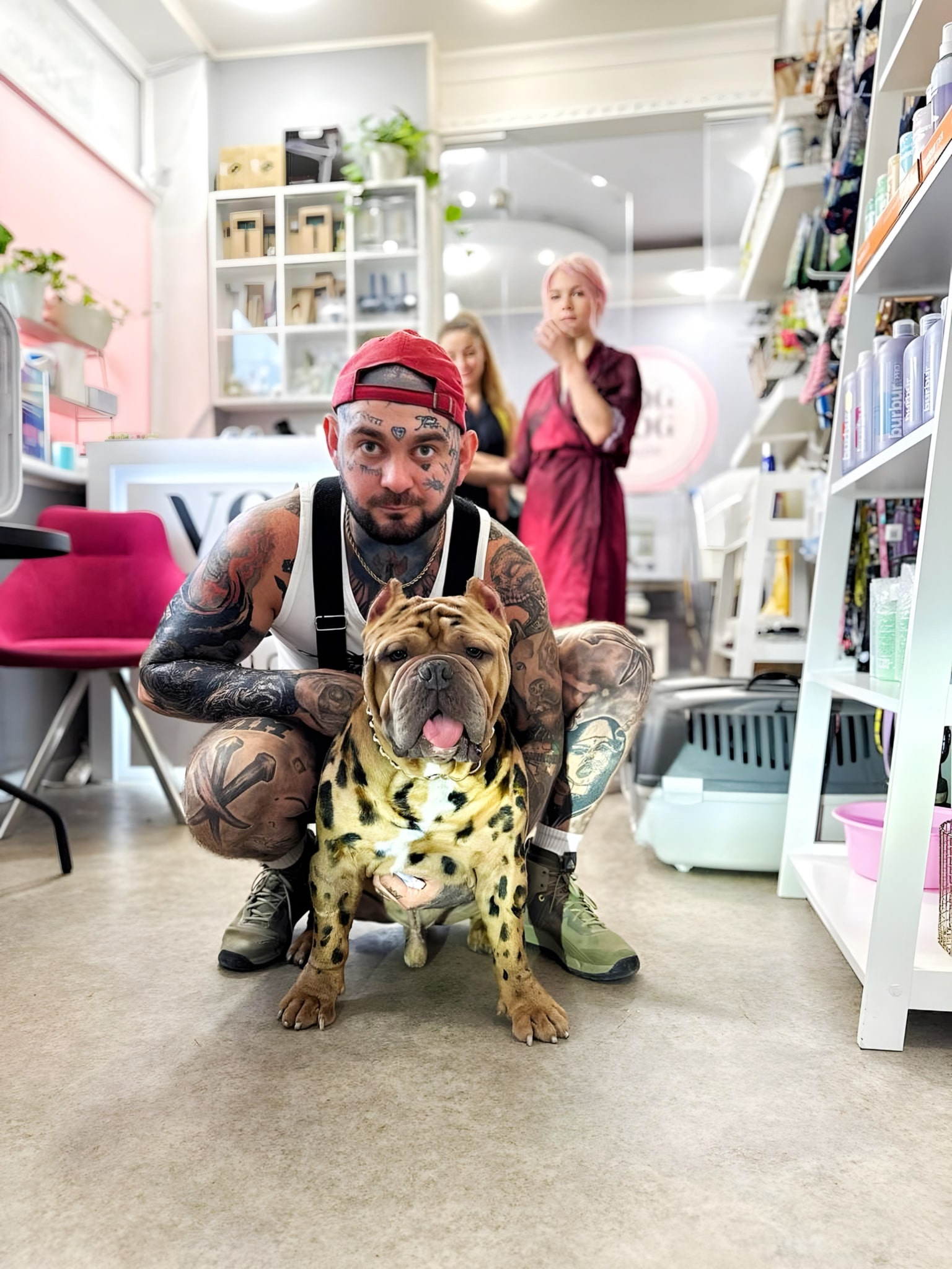 At V.O.G DOG SALON, we use only professional dyes made specifically for animals. These are hypoallergenic, plant-based products free from ammonia or other harsh chemicals. The coloring process includes several steps: