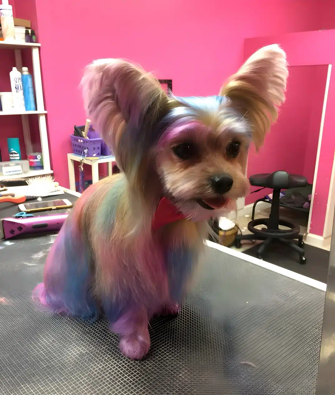 Coloring a yorkie is one of the most famous and spectacular creative grooming techniques. But it’s not just about pink ears or a colorful tail. Today masters can create real pictures on the dog’s coat: from delicate pastel transitions to bright graffiti-style patterns. And all this is absolutely safe.