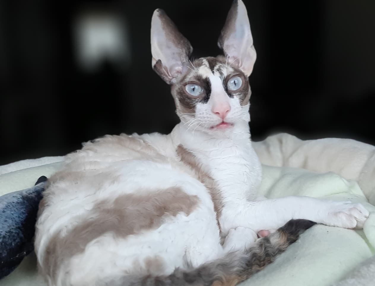 TheCornish Rex, the first of both breeds, appeared in the 1950s in the county of Cornwall, England. It all started with one unusual kitten named Callibunker, who was born with a wavy coat among the usual house cats. His owner noticed the unusual coat texture and began purposeful breeding, resulting in a new breed with a unique type of coat – thin, soft, without a shaft of hair, with curls all over the body. Thus came the Cornish Rex – a graceful, elegant cat with the appearance of a mannequin and the temperament of a puppy.
