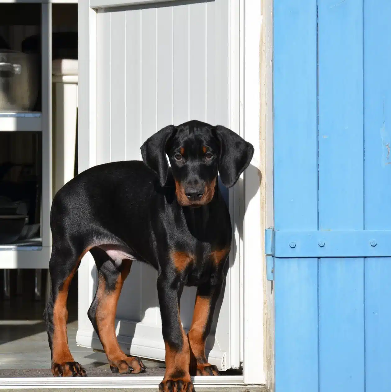 The Doberman is a medium-sized dog with an athletic build, known for its loyalty, intelligence and protective qualities. They are often used in service and security work due to their natural ability to learn and high efficiency.