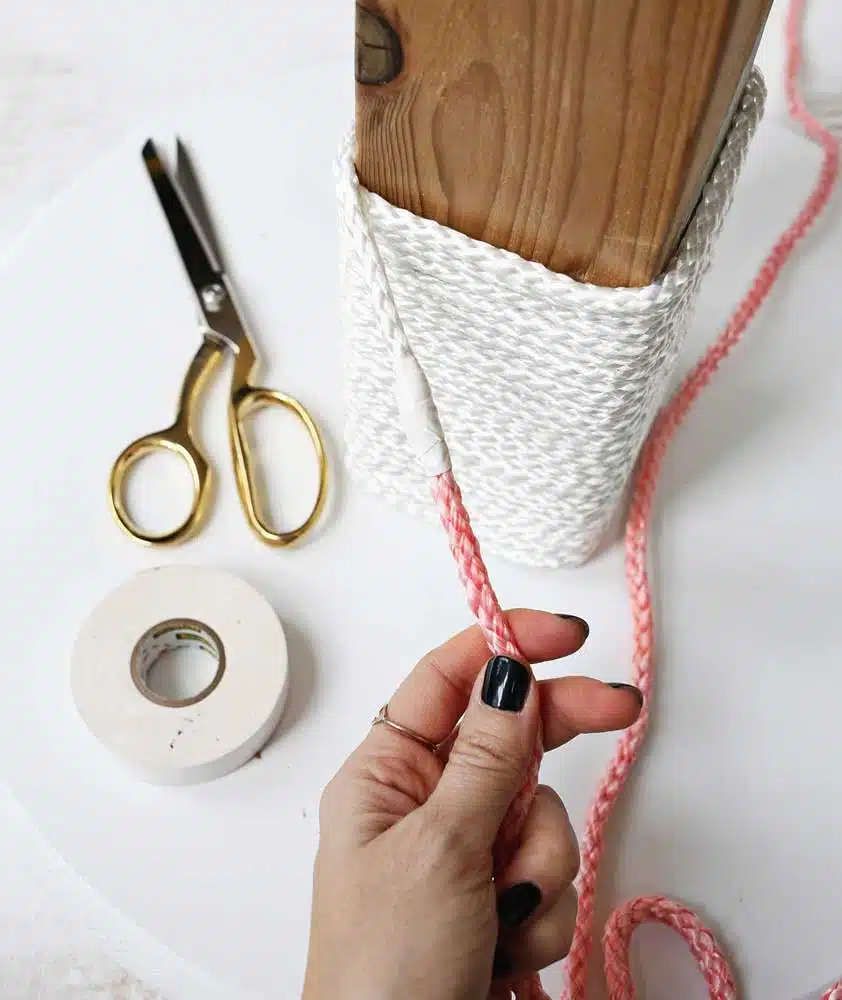 Natural, strong and pleasant to the touch materials, for example, jute or sisal ropes, are ideal for wrapping. If there is a piece of old carpet or rug left in the house, they can also be used during the creative process.