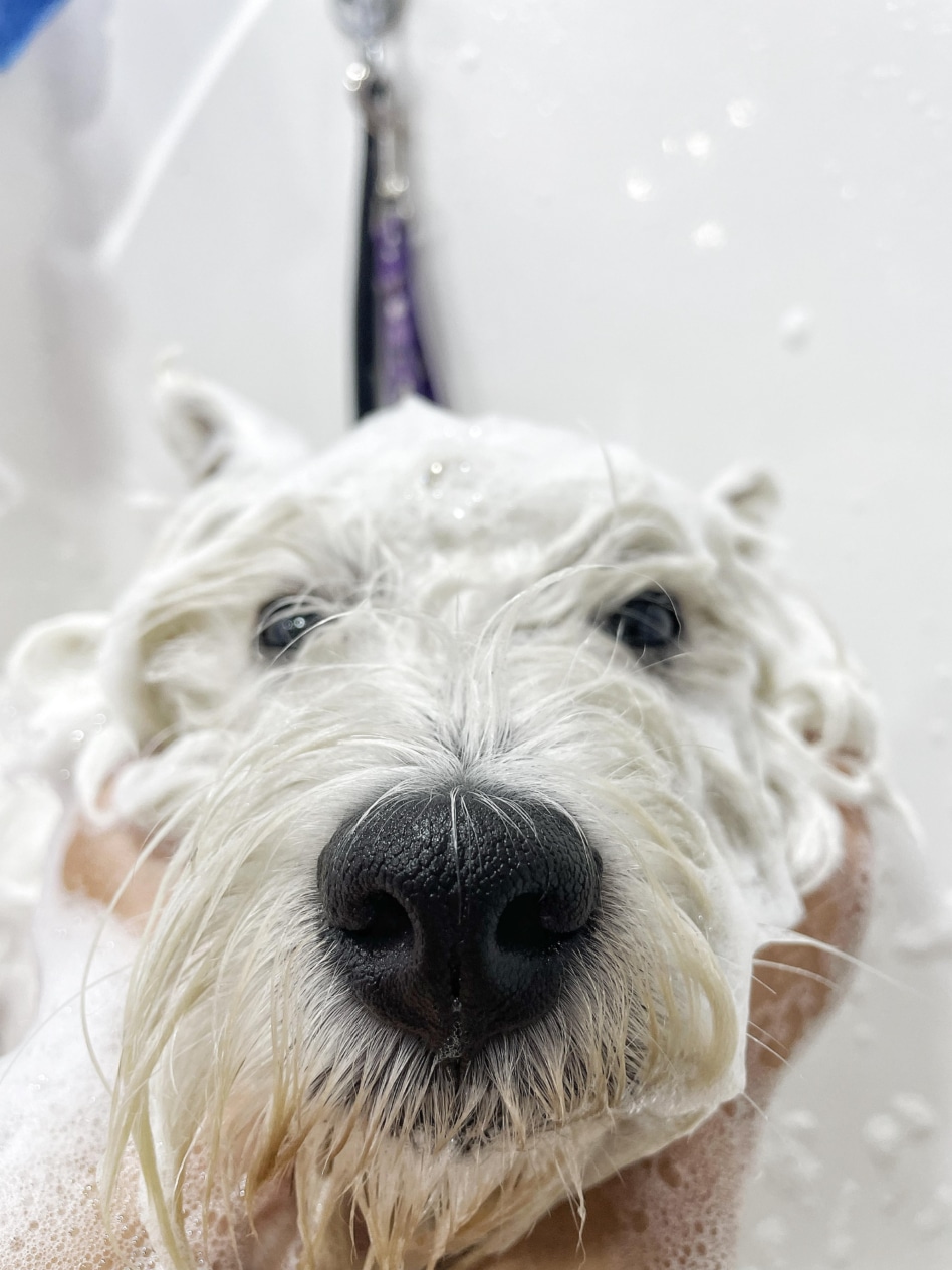 When bathing, it is extremely important to use warm water, not hot. Hot water can dry out the skin, cause flaking, and increase the likelihood of irritation. Always check the water temperature, especially for animals with sensitive skin or allergies.
