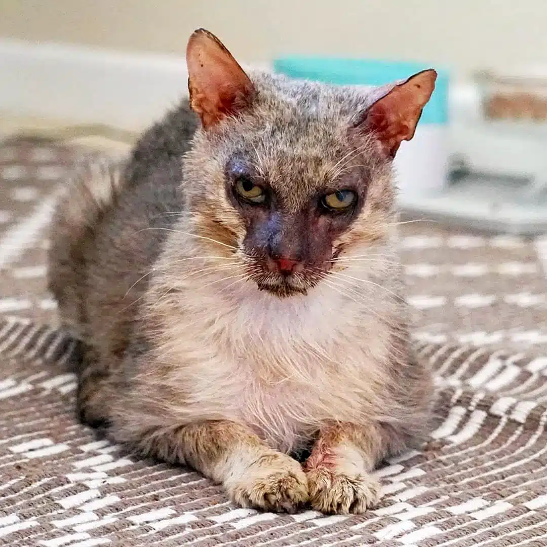 Lykoi also have large, open ears that tend to accumulate more wax than other breeds, so regular ear cleaning is a must. If you notice a bad smell or redness, a vet visit is necessary.