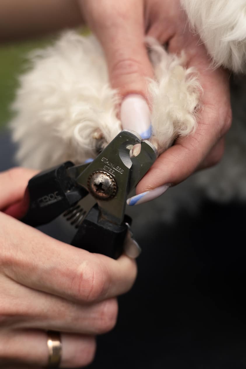 Nail trimming must be precise and careful. Inside each nail is a sensitive living area with blood vessels. Cutting the nail too short can injure this area, leading to bleeding and pain. This is particularly risky for dogs with black nails, where the blood vessel is not visible. The best approach is to trim nails frequently and in small increments to gradually push the blood vessels back.