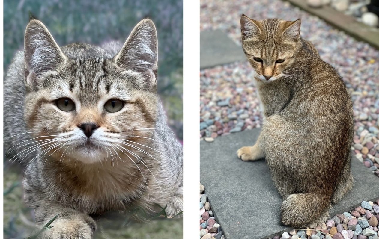The main feature of the pixie bob is its appearance. Their powerful, muscular build, short or angular tail, large paws and thick, slightly ruffled fur make them look like real wild cats. Their ears are slightly pointed, often with tassels at the ends, and their eyes are large, almond-shaped, usually golden or green in color. The coat can be short or medium length, and is always spotted – with characteristic spots scattered all over the body.
