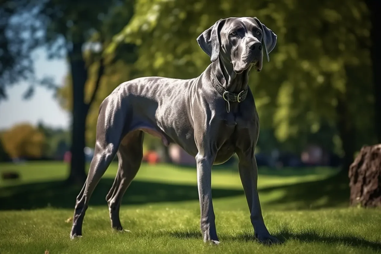 The Cane Corso is a large, muscular dog with a powerful and athletic build. They have a broad, square head with a strong jaw and well-defined muscles. The breed’s coat is short, thick and comes in a variety of colors, including black, gray and fawn. The Cane Corso’s imposing appearance and strong build contribute to its reputation as a formidable defender.