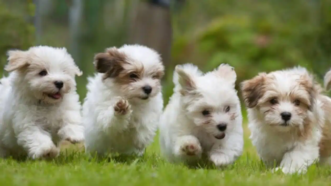 The Italian Bolonka is a small, compact dog with a strong build and thick, fluffy white fur. They have a rounded skull, a well-defined nape, and dark, expressive eyes that give them a sweet, yet watchful expression. Their fur is soft, curly and fluffy, making these dogs look like clouds. Unlike many other breeds, bolons do not shed, making them a good choice for people with allergies.