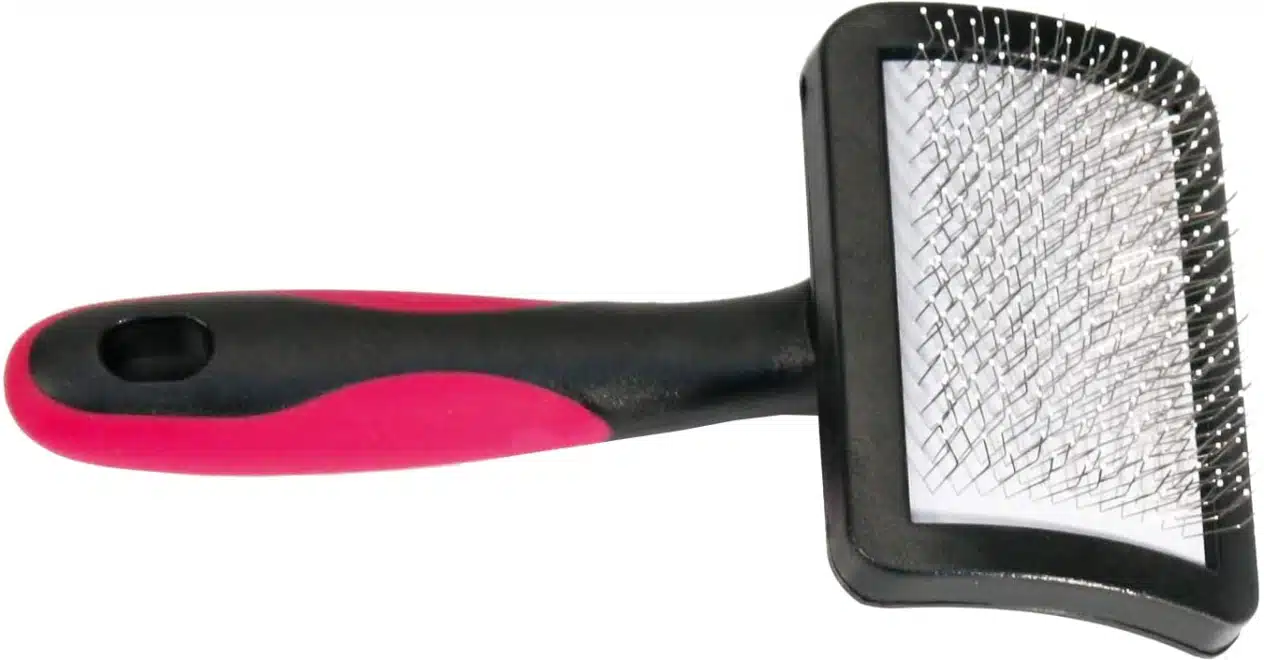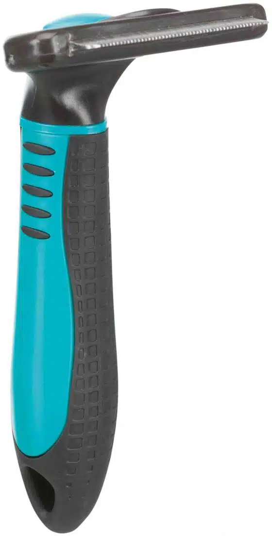 A tool for removing undercoat, especially useful for breeds with thick or double coats. A rake helps keep the coat in good condition by reducing tangling and shedding.