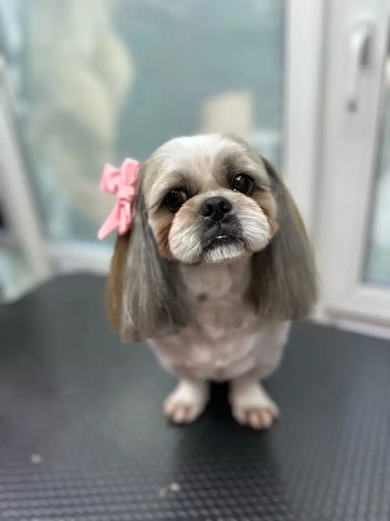 — Shih Tzu Girl Grooming: This grooming focuses on charm and elegance. The fur on the body may be a bit longer than that of the boys, with neatly styled lines. The hair on the head and ears is often left long and styled into beautiful hairstyles or ponytails.