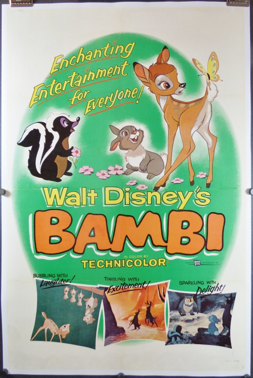 🦌 Main characters: young deer Bambi, his friends Thumper the rabbit and Flower the skunk.