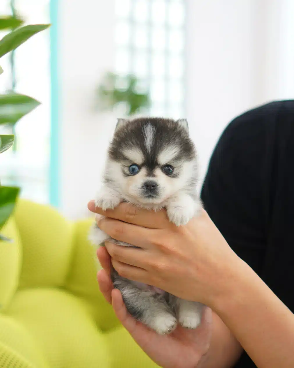 This mix has gone viral thanks to its looks. Take the magical look of a Husky, the fluffiness and tiny size of a Spitz and you get a lively toy with the personality of a wolf. Pomskies have a playful nature, but do not tolerate boredom. They are not suitable for everyone – only those who are ready for an active lifestyle and regular grooming.