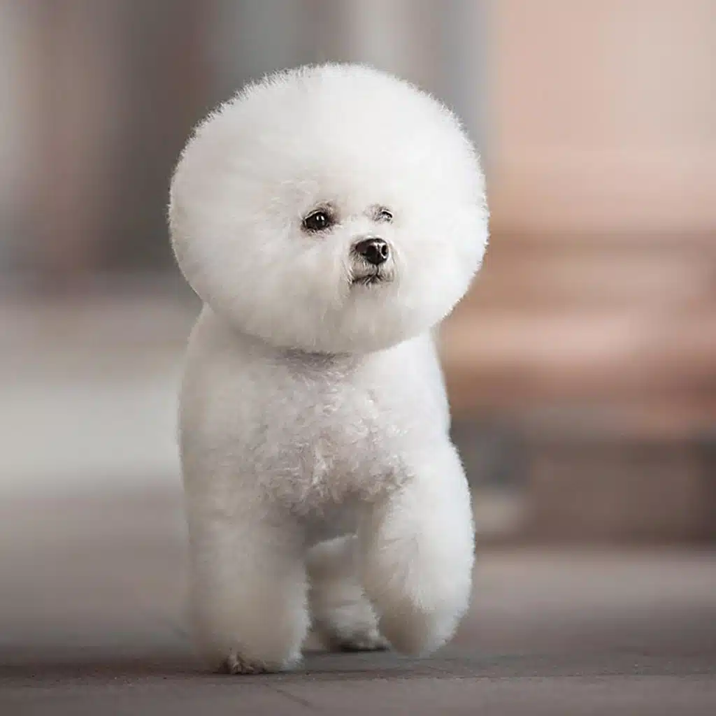 - Bichon Frize. These are gentle, sociable dogs that get along well with people and other animals. Bichons are quite active, but they do not need long walks – games in the apartment are quite enough. They don’t shed, which is a plus, but their coat needs regular grooming to stay white and fluffy.