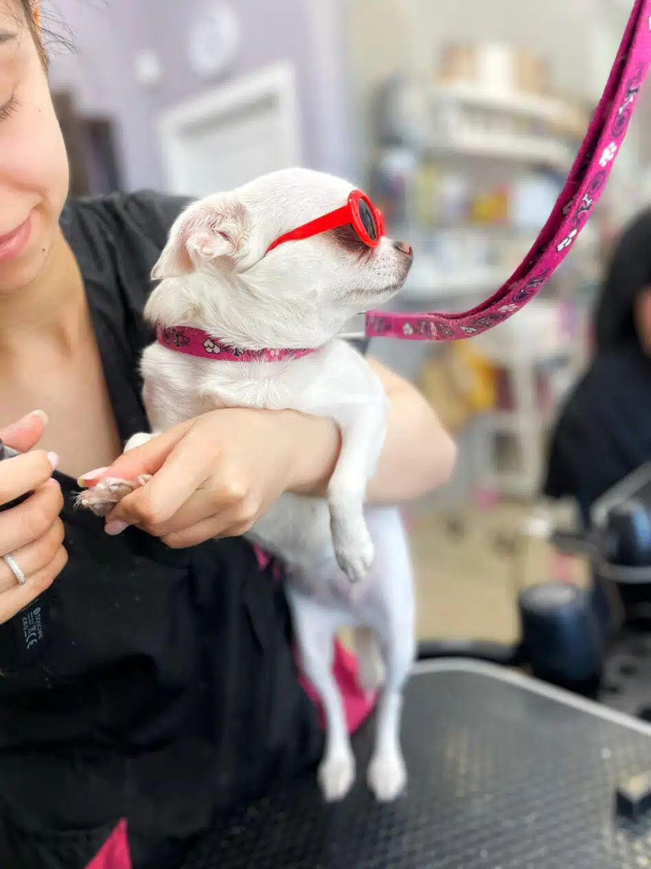 - Trimming the claws is a basic procedure that allows you to prevent delamination of the claws, injuries and discomfort of the animal. Groomers have claw cutters of various sizes that allow you to perform procedures for both small and large breeds, as well as grinders for filing and shaping claws. The groomer is knowledgeable about the structure of the claw, the location of the blood vessels and the correct 45 degree clipping technique.