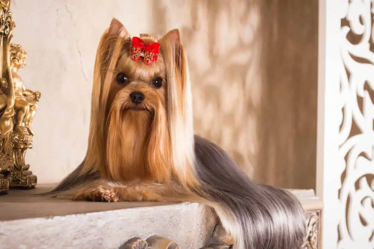 Everyone admires the shiny long coat of the yorkie in the photo, but few show the downside of this beauty. The first thing that the owner faces is tangles. They are formed where you do not expect: under the paws, behind the ears, under the tail. Sometimes even in the beard, if the yorkie slept with a wet chin after drinking. If you miss at least one place when combing – the next day there is a knot, and a week later – a piled piece of hair, which will have to be cut off.