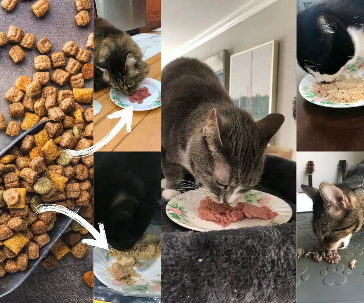 Es necesario cambiar la comida de tu perro, cambiar a líneas de comida de marcas diferentes y, a veces, darle comida natural. Es importante que esto no se haga deprisa y de repente, pues sería estresante para el gato y su aparato digestivo. Mezcla poco a poco la comida vieja con la nueva, aumentando gradualmente la cantidad de comida nueva y disminuyendo la de comida vieja. Empieza mezclando un 75% de la comida vieja y un 25% de la nueva, y luego cambia las cantidades hasta que los porcentajes alcancen el 100% de la comida nueva. Para mejorar el humor de tu gato y aliviar su estrés, utiliza platos de formas diferentes y cámbialos, y pon siempre agua limpia en un cuenco cercano. Tómate tu tiempo y deja que tu gato se adapte a la nueva comida. Vigila su estado, pues aunque cambie a un alimento de buena calidad, puede sufrir diarrea, vómitos y estreñimiento. También es importante tener en cuenta que el sabor de la comida desempeña un papel importante en la sustitución de alimentos. Si no sabes nada al respecto, puedes pedir consejo a veterinarios y dependientes de tiendas de animales.