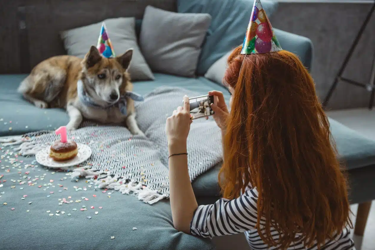 Asegúrate de capturar los momentos de los saludos, de comer la tarta de cumpleaños y de los juegos de tu mascota con los amigos para hacer un vídeo que recuerde la celebración del cumpleaños. Se te pueden ocurrir ideas interesantes para una sesión de fotos con disfraces de animales para ver estas fotos con tu mascota más tarde.