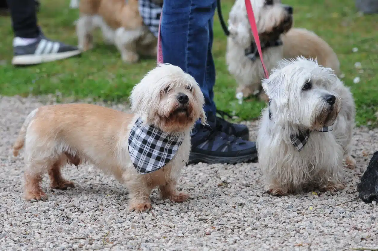 El Dandy Dinmont Terrier es un perro pequeño de cuerpo largo, patas cortas y un gracioso mechón de pelo en la cabeza. Estos perros se utilizaban antiguamente para la caza, pero hoy en día se crían como mascotas y compañeros. Son conocidos por su carácter afectuoso y también se les considera una de las razas de terrier más obedientes.