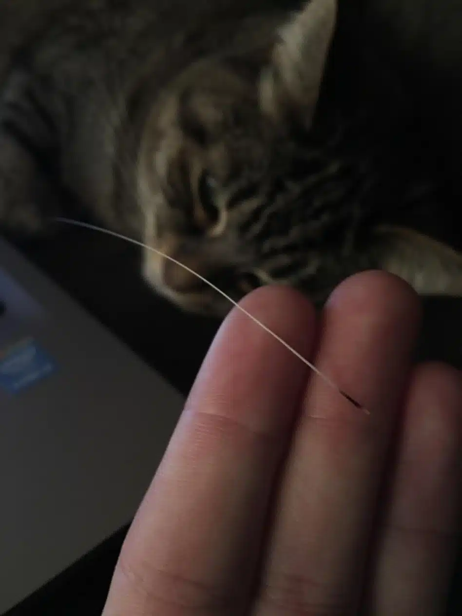 Les moustaches (vibrisses) sont les organes sensoriels extrêmement sensibles du chat qui l’aident à naviguer, à sentir son environnement et même à jauger la largeur de ses passages. Leur fragilisation ou leur perte peut être un processus naturel – tout comme la perte des poils lors de la mue. Cependant, une perte ou une cassure excessive des moustaches est le signe de problèmes : mauvaise alimentation, carences en vitamines et en minéraux, réactions allergiques, infections fongiques ou bactériennes, stress ou dommages mécaniques (par exemple, lorsqu’il joue avec d’autres animaux).