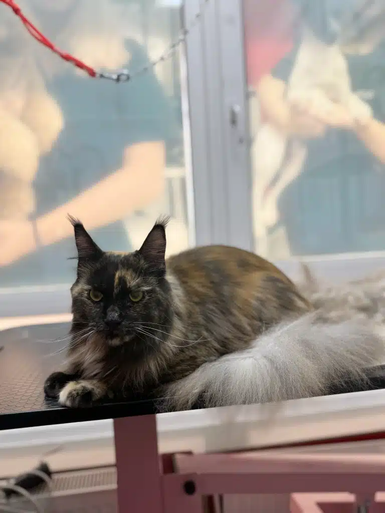 Шерсть бенгалів має унікальну текстуру, яка блищить і нагадує шовк. Для збереження цього ефекту ми використовуємо спеціальні шампуні, що підкреслюють природний блиск. Процедура купання проходить із комфортною температурою води, а сушка — без зайвого шуму, щоб уникнути стресу для тварини.