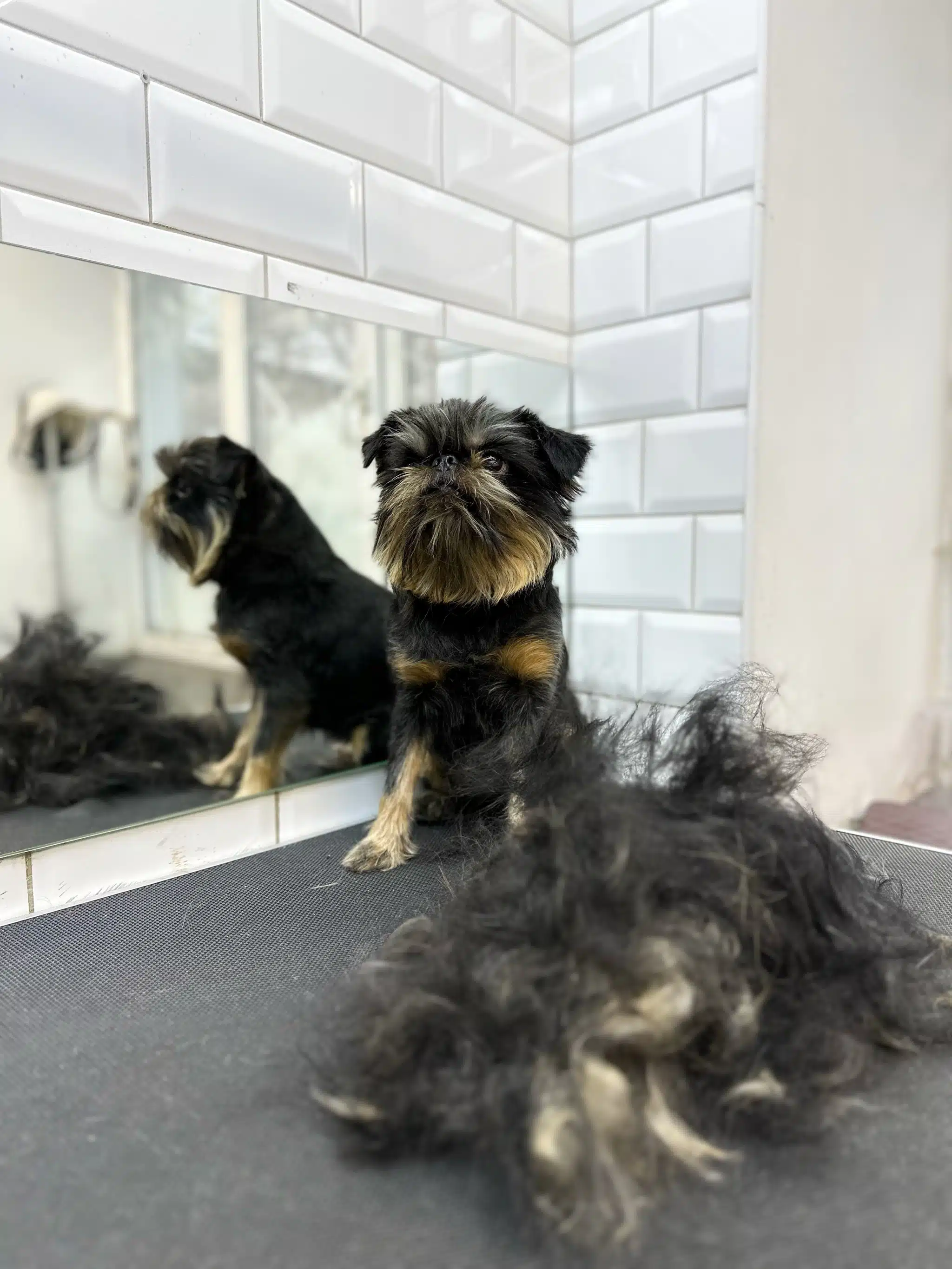 Окремо слід зазначити про стрижку грифонів. Якщо ви не готові витрачати час та кошти на тримінг, а ваш вірний друг страждає від ковтунів, стрижка може вирішити вашу проблему. Однак слід враховувати, що після стрижки шерсть грифона зміниться і втратить свою жорсткість. Якщо під час тримінгу грумер прибирає відмерлу шерсть, залишивши шар зрілої остьової шерсті – грифон і надалі залишатиметься жорсткошерстим, а шерсть буде виконувати свою захисну функцію. У разі стрижки – вся шерсть зрізається під одну довжину і, таким чином, ость разом з підпушком знаходиться на одному рівні. Підпушок росте набагато швидше, ніж ость, тому після стрижки шерсть буде м’яка, швидше збиватись у ковтуни і бруднитись. Відновити жорсткошерстість після стрижки доволі складно, адже неможливо передбачити, як швидко відросте жорсткий шар шерсті. Тож ретельно обдумайте рішення що стрижки, перед тим як записуватись у салон для тварин на цю процедуру.
