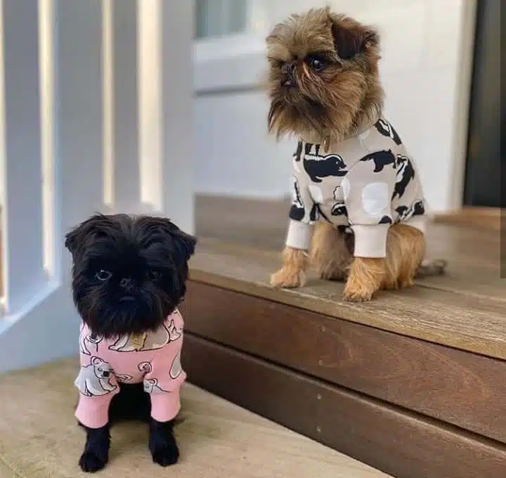 - Брабантський грифон. Собака має коротку гладку шерсть з чорним, чорним з підпалом або рудим окрасом.