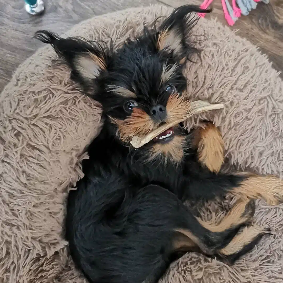 - Бельгійський грифон. Собака має таку ж шерсть, як у брюссельського грифона, але окрас буде чорним або чорним з підпалом.