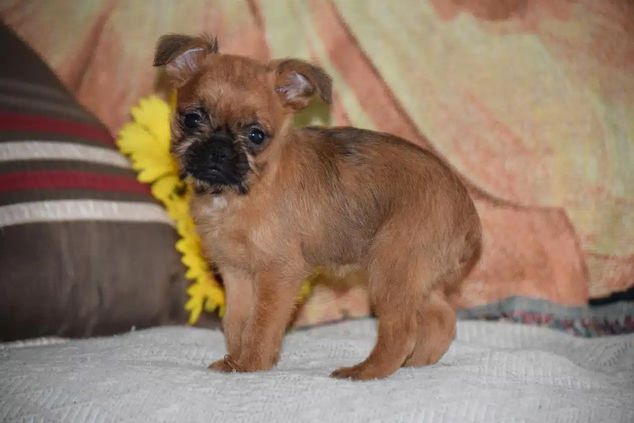 - Брюссельський грифон. Собака має грубу, жорстку шерсть і характерний рудий або рудо-чорний окрас.
