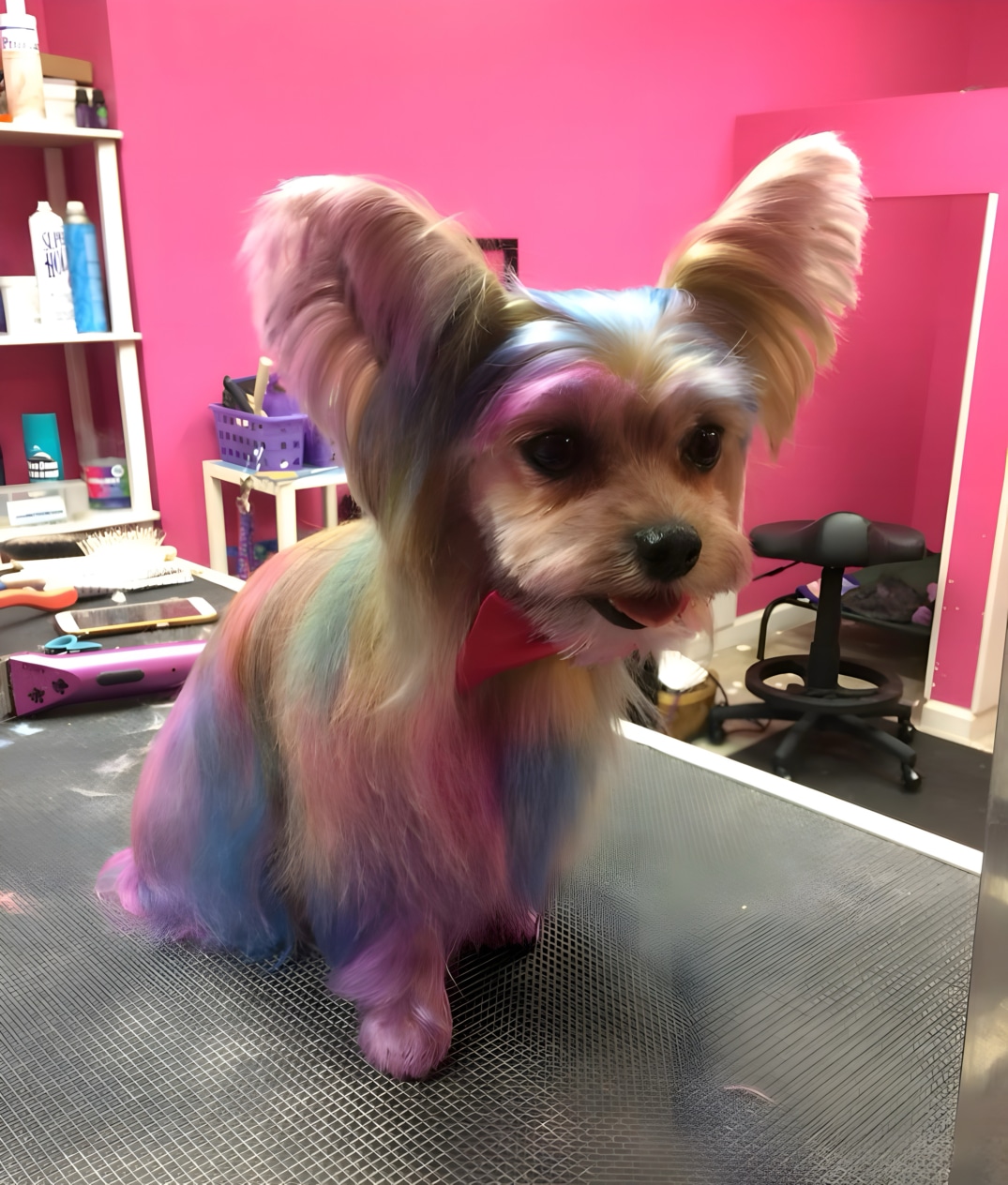 Йоркширські тер’єри ідеально підходять для креативного грумінгу. Їхня шовковиста, рівна шерсть нагадує людське волосся — на ній чудово тримається форма, легко створювати чіткі лінії, переходи та кольорові ефекти. Крім того, йорки зазвичай мають добрий характер, звиклі до уваги й турботи, тож вони добре переносять процедури й охоче “позують” після грумінгу.