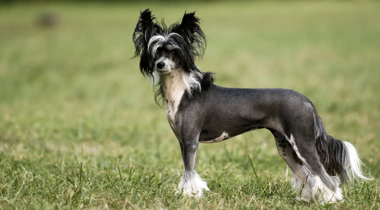 Лиса собака з чубом. Ця витончена порода має два типи: пуховий (із м’якою шерстю) і лисий. Лисий варіант відомий своїм чубчиком на голові, пухнастим хвостиком і граціозним виглядом. Вони дуже ніжні, доброзичливі та ідеально підходять для сімей.