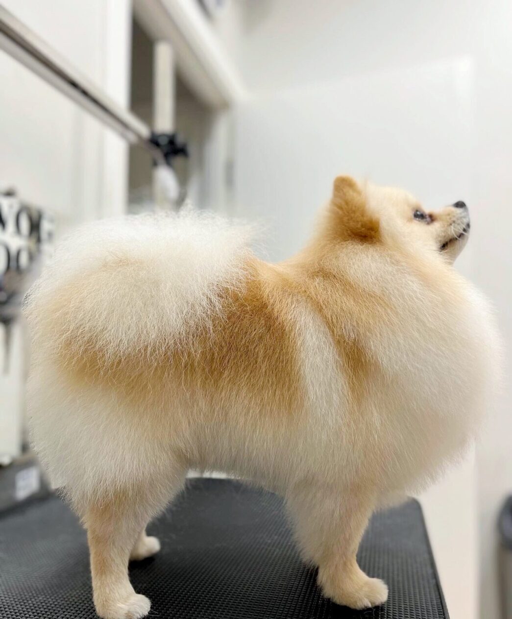 Для шпіців, наприклад, важливе регулярне вичісування шерсті, адже вона довга, густа і м’яка. Ми радіємо, що все більше господарів обирають класичну породну стрижку, залишаючи в минулому стрижку під мішку Бу, яка сполохала весь світ. В моді зараз густа, блискуча шерсть, яку грумери майстерно заокруглюють на грудці та попі, роблячи акцент на об’ємних фігурах.