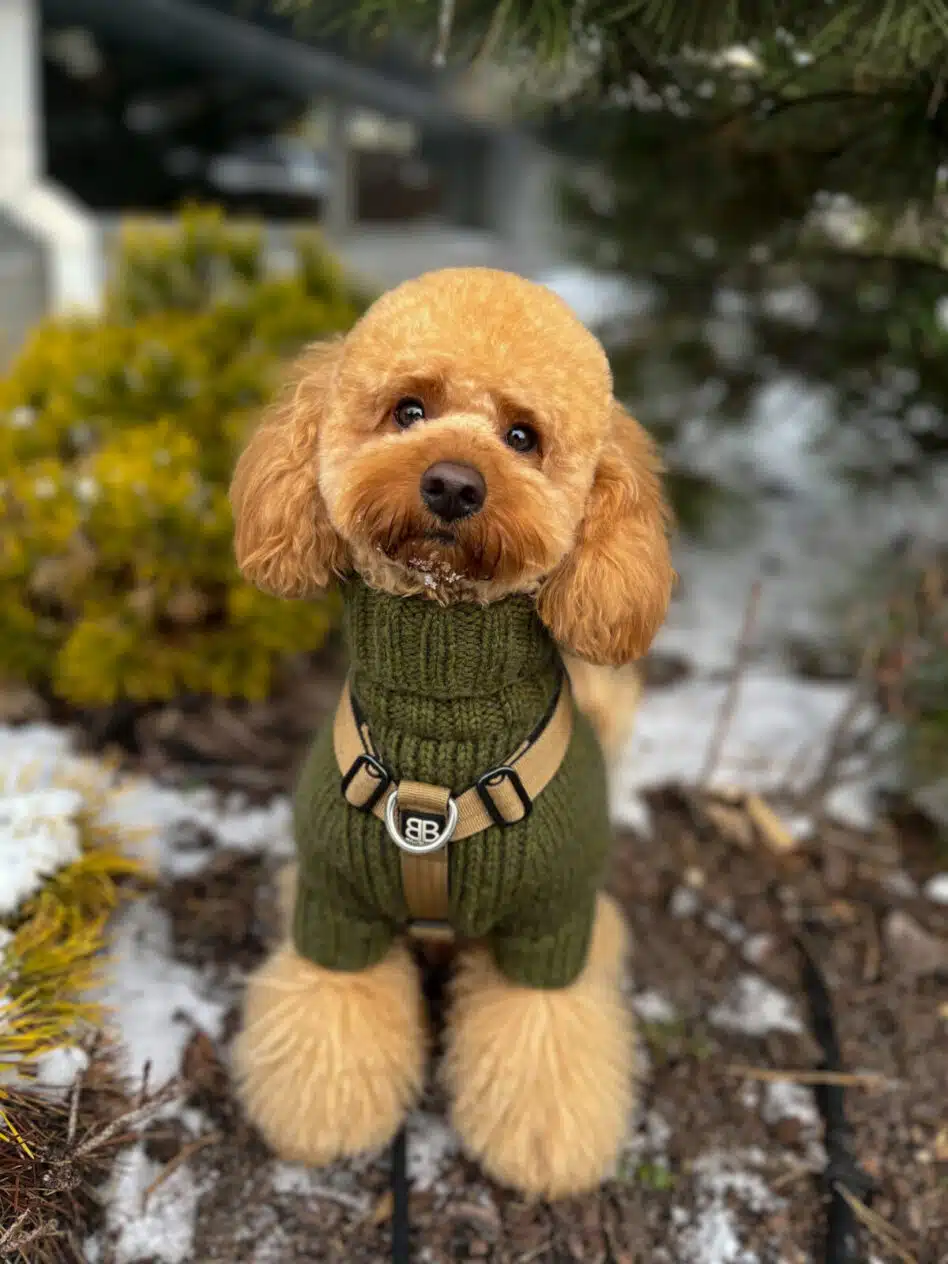 - Одяг для прогулянок. Під час прогулянок обирайте м’які комбінезони або светри, які захищають шерсть від тертя та злипання. Уникайте синтетичних матеріалів, які можуть викликати статичну електрику.