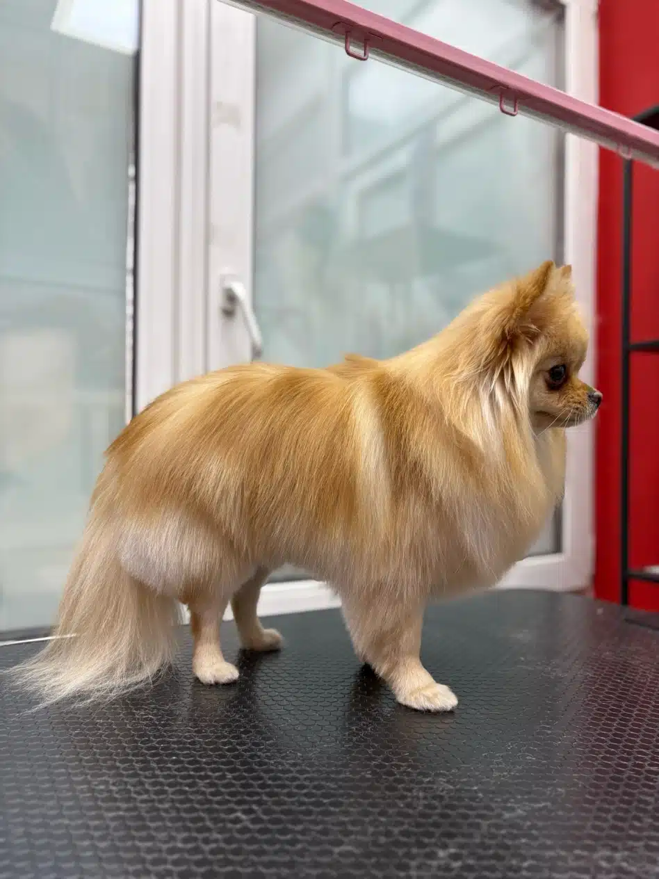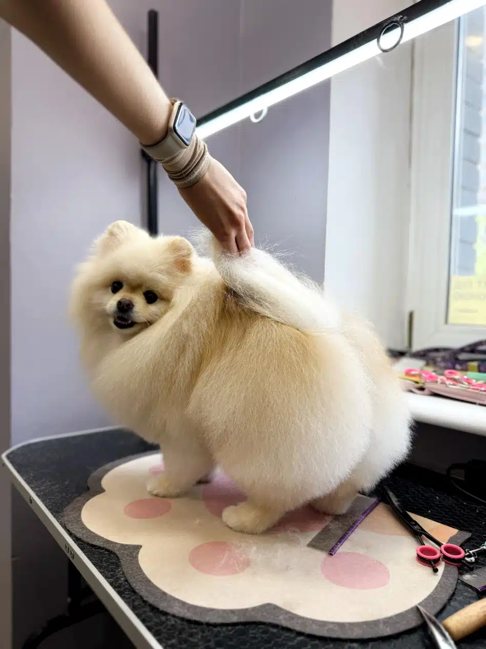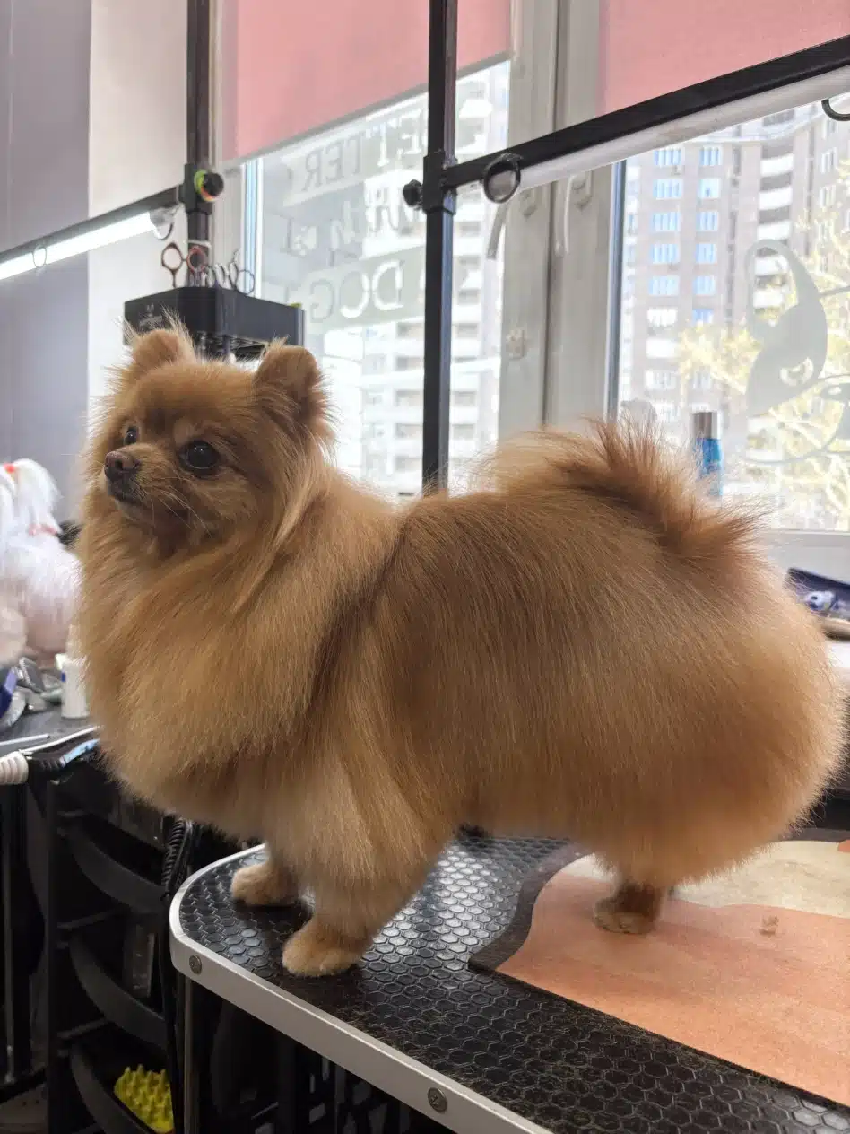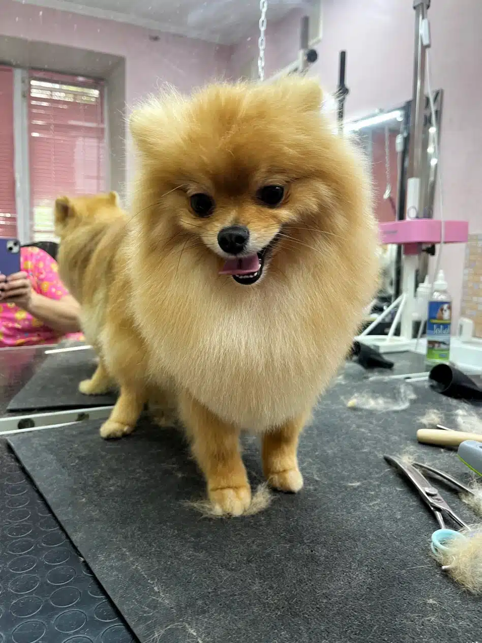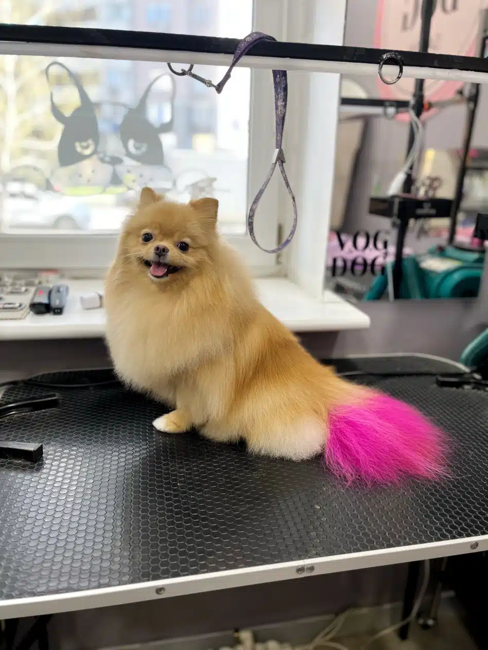 Kreatywne strzyżenie również zyskuje na popularności wśród szpiców. Nie są agresywne, jak niektóre pudle wystawowe. Wszystko jest bardzo delikatne: kręcona fryzura w formie „grzywiastego lwa”, serce na grzbiecie, ładne wzory na biodrach lub kołnierzu. Czasami dodają kolor do ogona lub uszu – z bezpiecznymi pigmentami dla zwierząt. To zupełnie inny poziom: dla tych, którzy chcą prawdziwego ucieleśnienia charakteru psa w jego wyglądzie. Ale i tutaj groomer musi dokładnie wiedzieć, co robi: nie używaj maszynki do strzyżenia na całej długości, nie „gol” sierści do podszerstka i nie zaburzaj naturalnego wzrostu włosa.