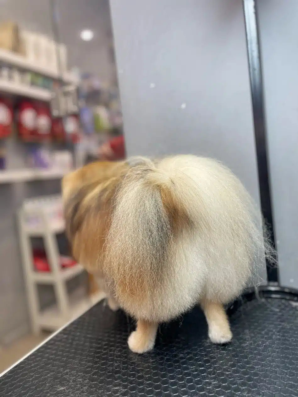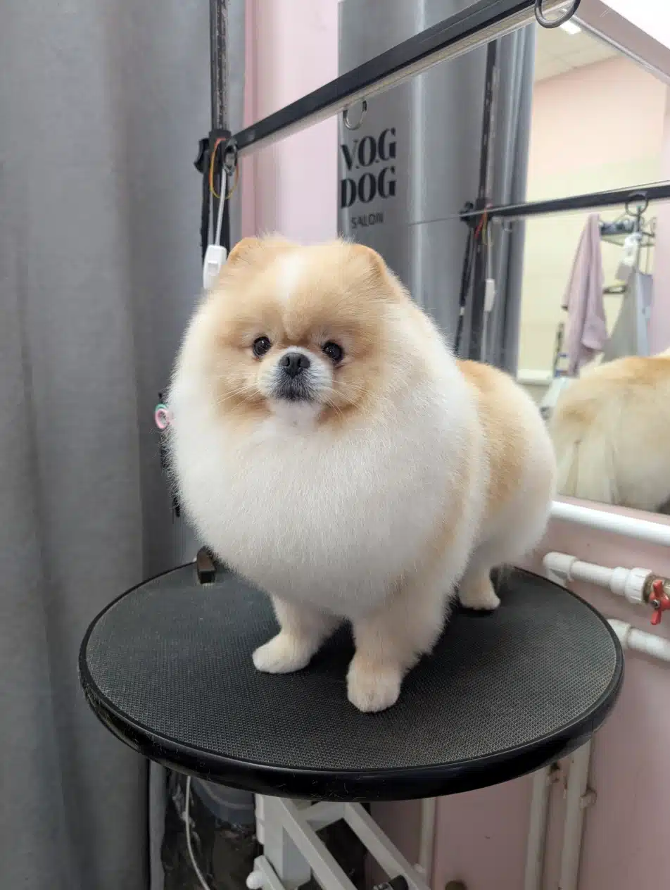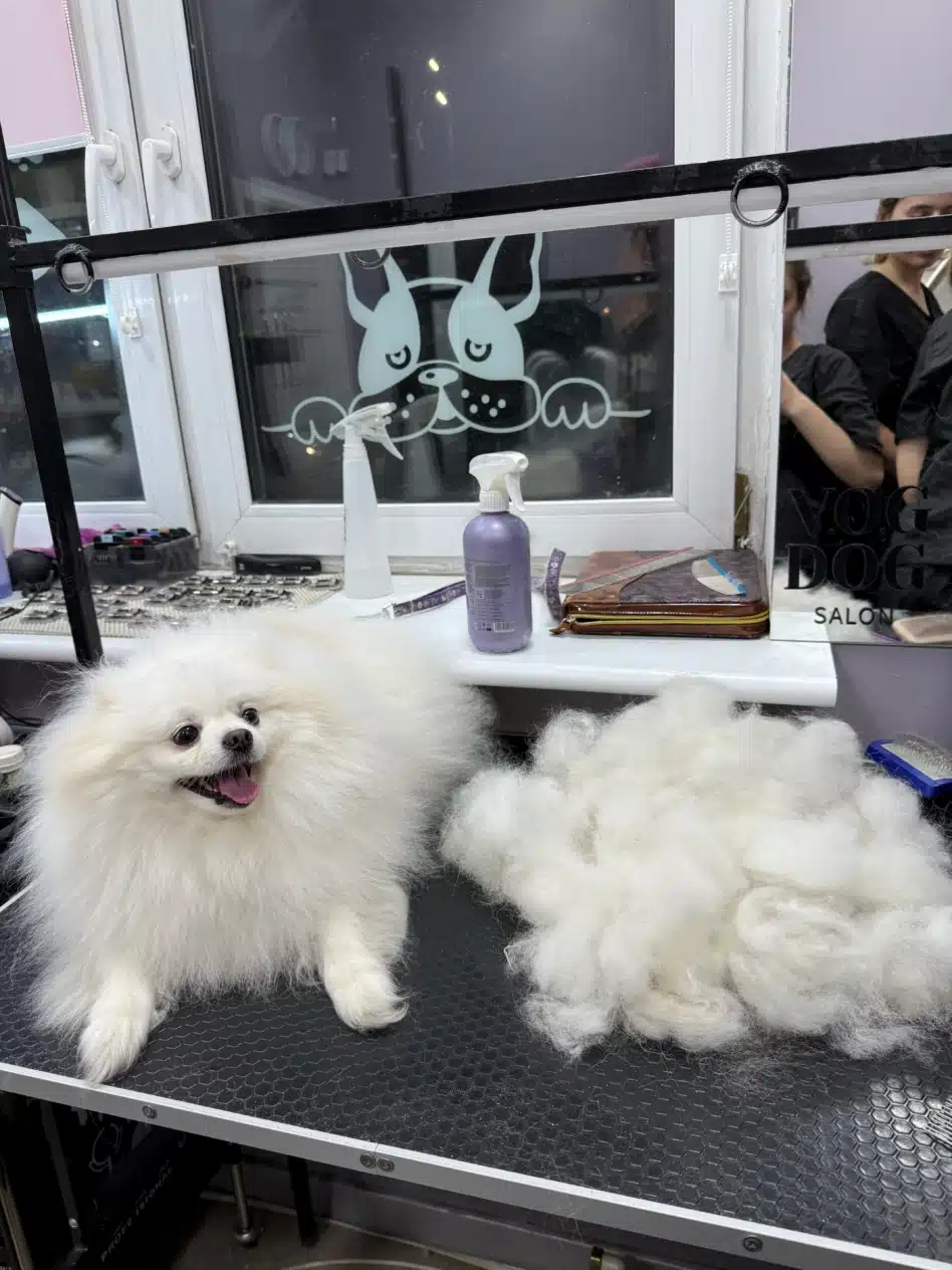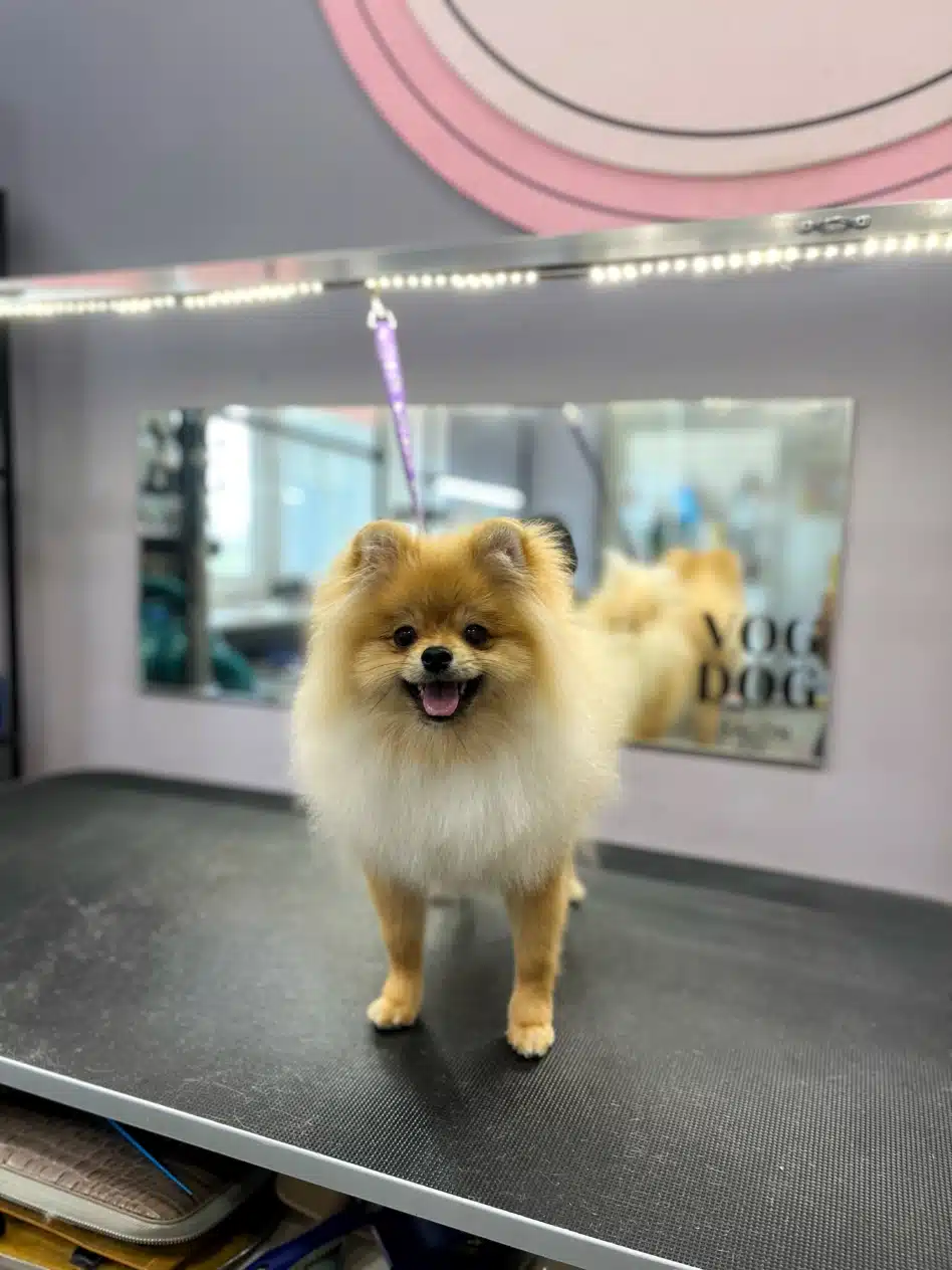 Kreatywne strzyżenie również zyskuje na popularności wśród szpiców. Nie są agresywne, jak niektóre pudle wystawowe. Wszystko jest bardzo delikatne: kręcona fryzura w formie „grzywiastego lwa”, serce na grzbiecie, ładne wzory na biodrach lub kołnierzu. Czasami dodają kolor do ogona lub uszu – z bezpiecznymi pigmentami dla zwierząt. To zupełnie inny poziom: dla tych, którzy chcą prawdziwego ucieleśnienia charakteru psa w jego wyglądzie. Ale i tutaj groomer musi dokładnie wiedzieć, co robi: nie używaj maszynki do strzyżenia na całej długości, nie „gol” sierści do podszerstka i nie zaburzaj naturalnego wzrostu włosa.