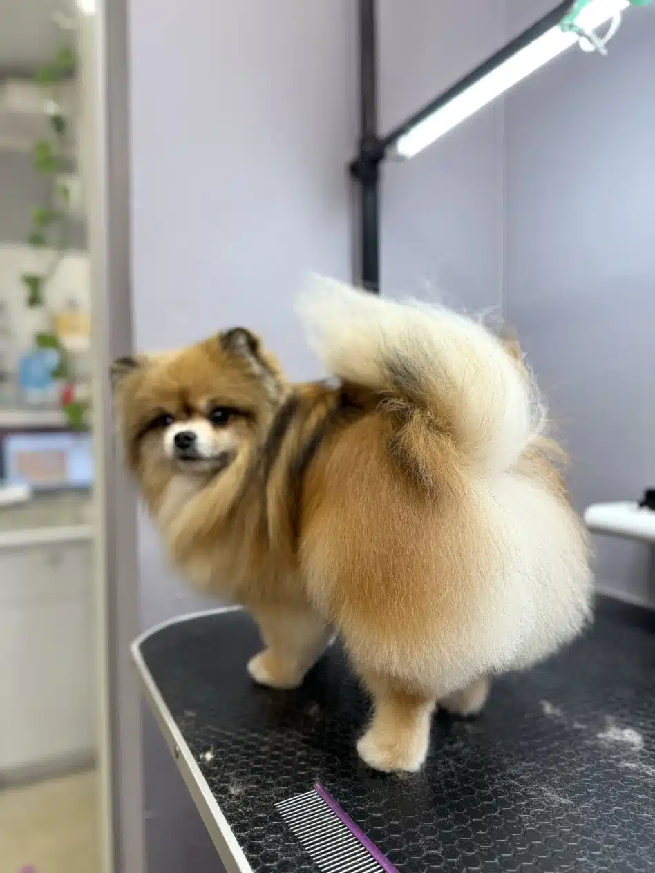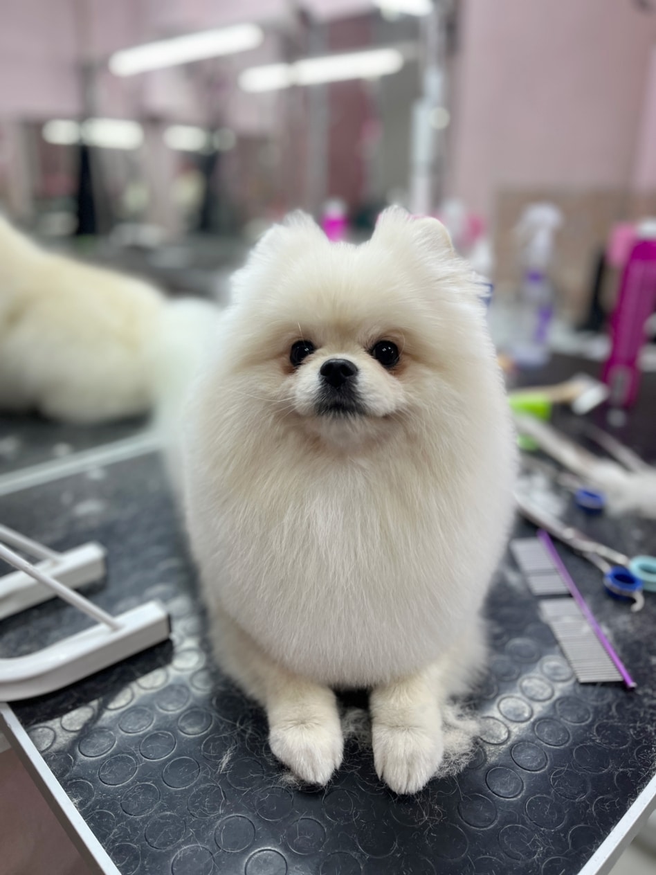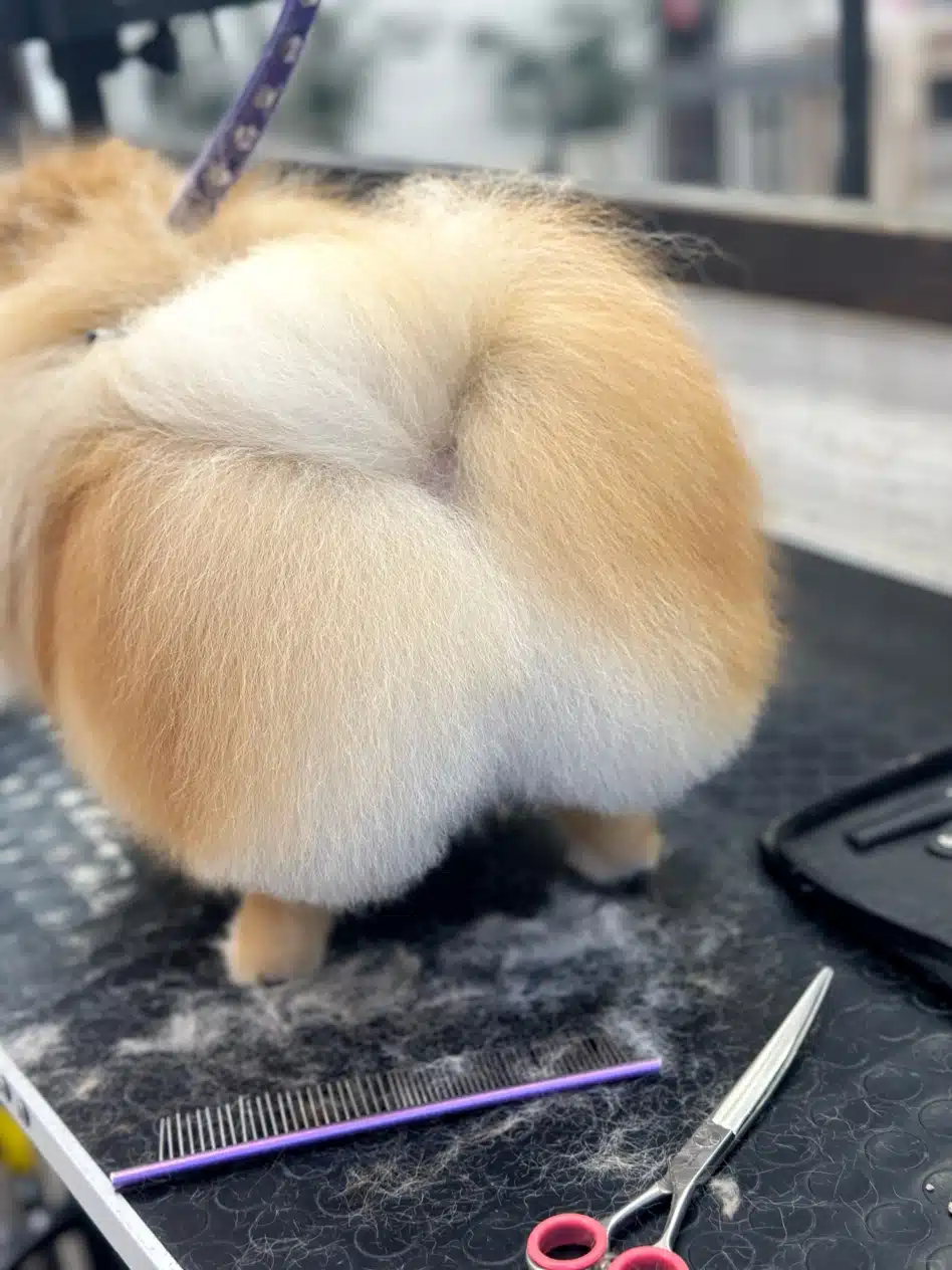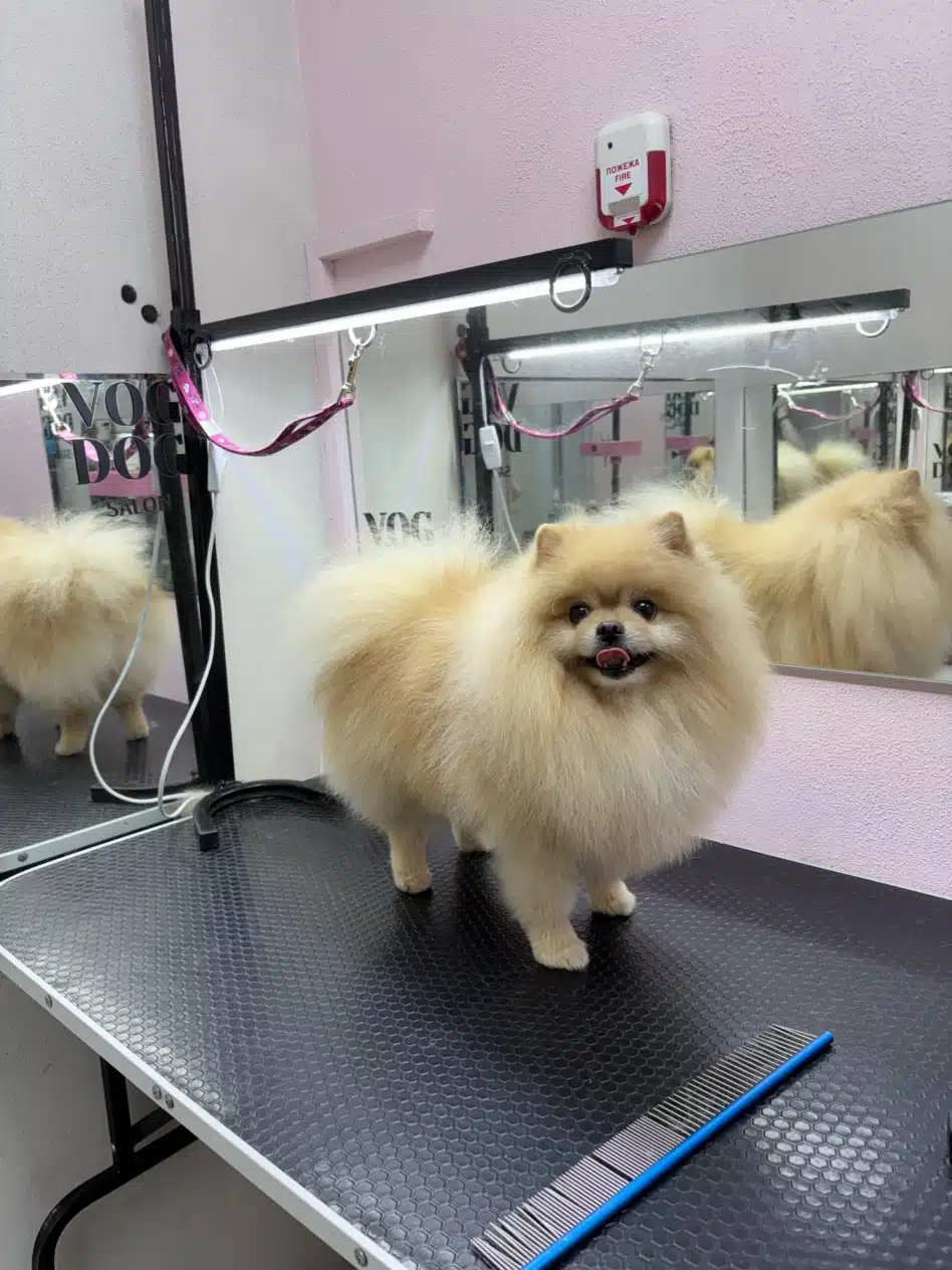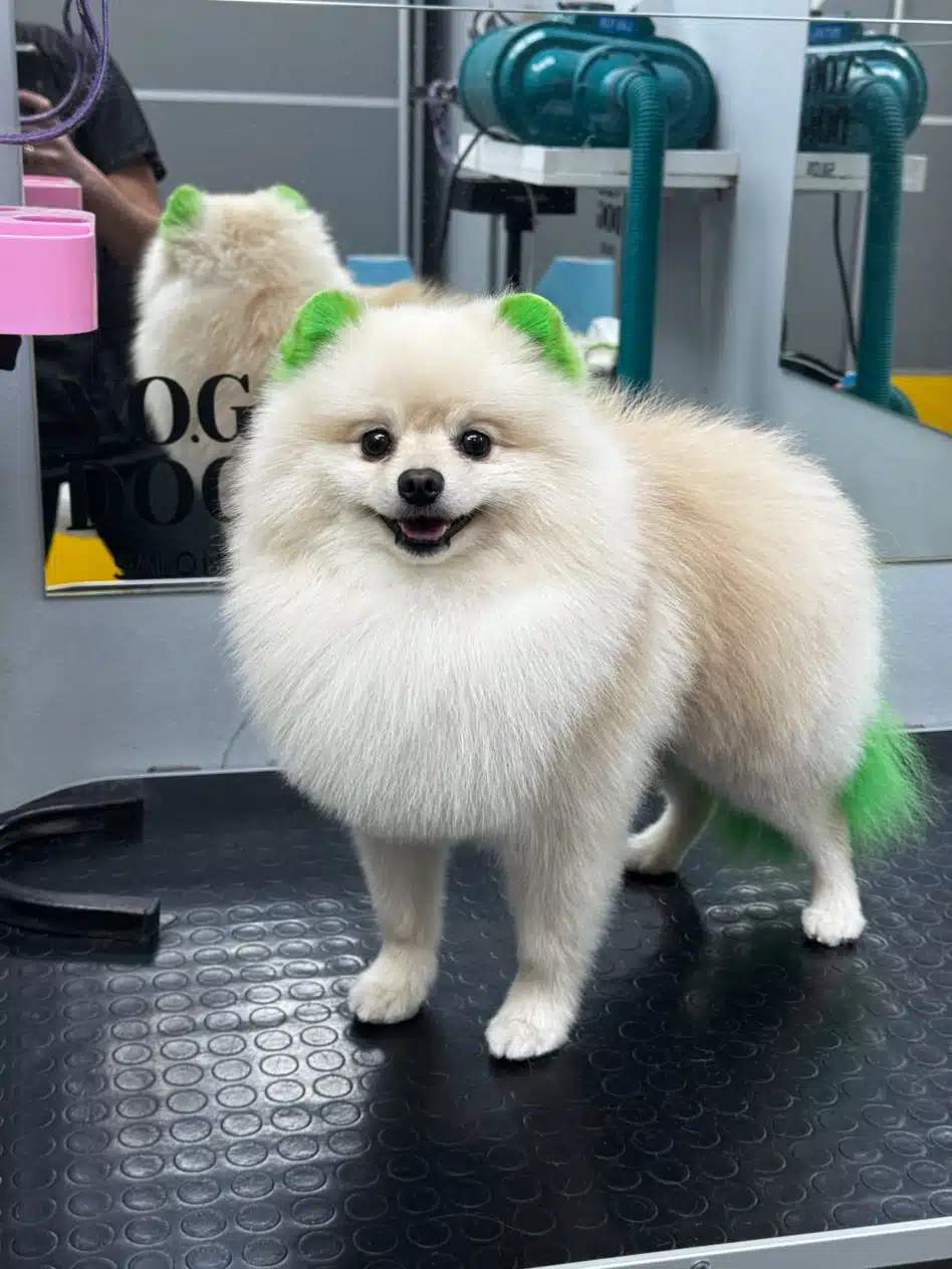 Kreatywne strzyżenie również zyskuje na popularności wśród szpiców. Nie są agresywne, jak niektóre pudle wystawowe. Wszystko jest bardzo delikatne: kręcona fryzura w formie „grzywiastego lwa”, serce na grzbiecie, ładne wzory na biodrach lub kołnierzu. Czasami dodają kolor do ogona lub uszu – z bezpiecznymi pigmentami dla zwierząt. To zupełnie inny poziom: dla tych, którzy chcą prawdziwego ucieleśnienia charakteru psa w jego wyglądzie. Ale i tutaj groomer musi dokładnie wiedzieć, co robi: nie używaj maszynki do strzyżenia na całej długości, nie „gol” sierści do podszerstka i nie zaburzaj naturalnego wzrostu włosa.