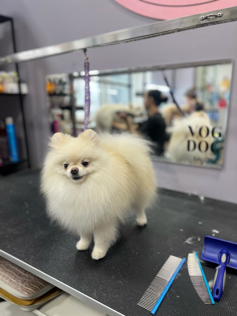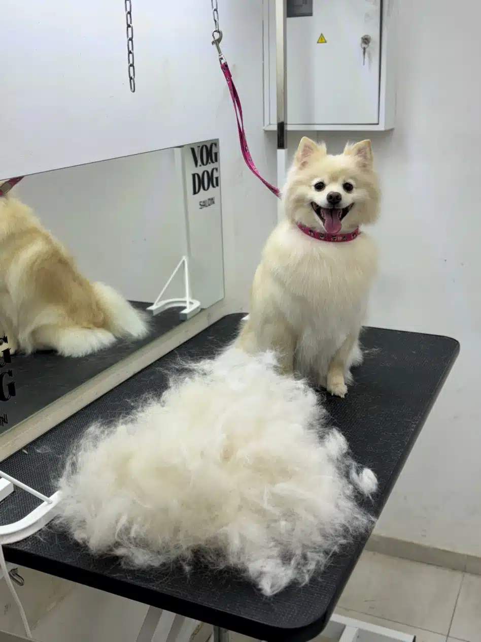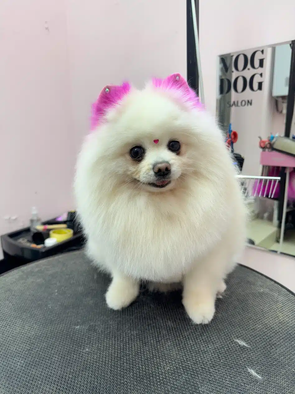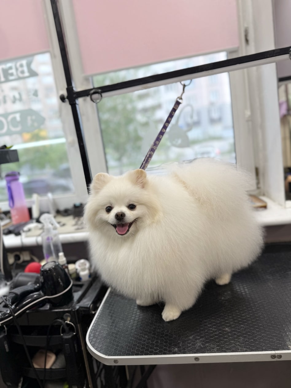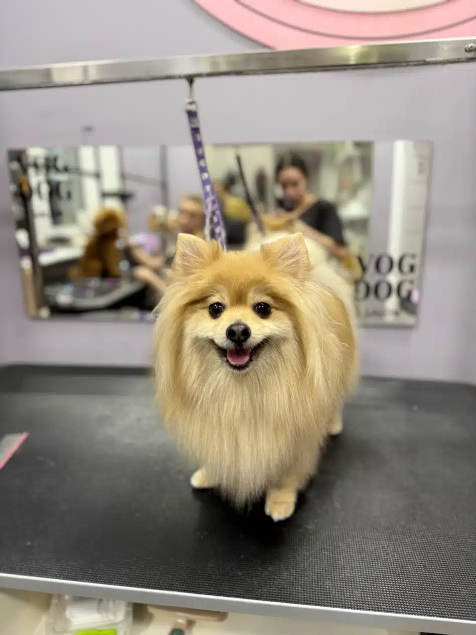 Kreatywne strzyżenie również zyskuje na popularności wśród szpiców. Nie są agresywne, jak niektóre pudle wystawowe. Wszystko jest bardzo delikatne: kręcona fryzura w formie „grzywiastego lwa”, serce na grzbiecie, ładne wzory na biodrach lub kołnierzu. Czasami dodają kolor do ogona lub uszu – z bezpiecznymi pigmentami dla zwierząt. To zupełnie inny poziom: dla tych, którzy chcą prawdziwego ucieleśnienia charakteru psa w jego wyglądzie. Ale i tutaj groomer musi dokładnie wiedzieć, co robi: nie używaj maszynki do strzyżenia na całej długości, nie „gol” sierści do podszerstka i nie zaburzaj naturalnego wzrostu włosa.